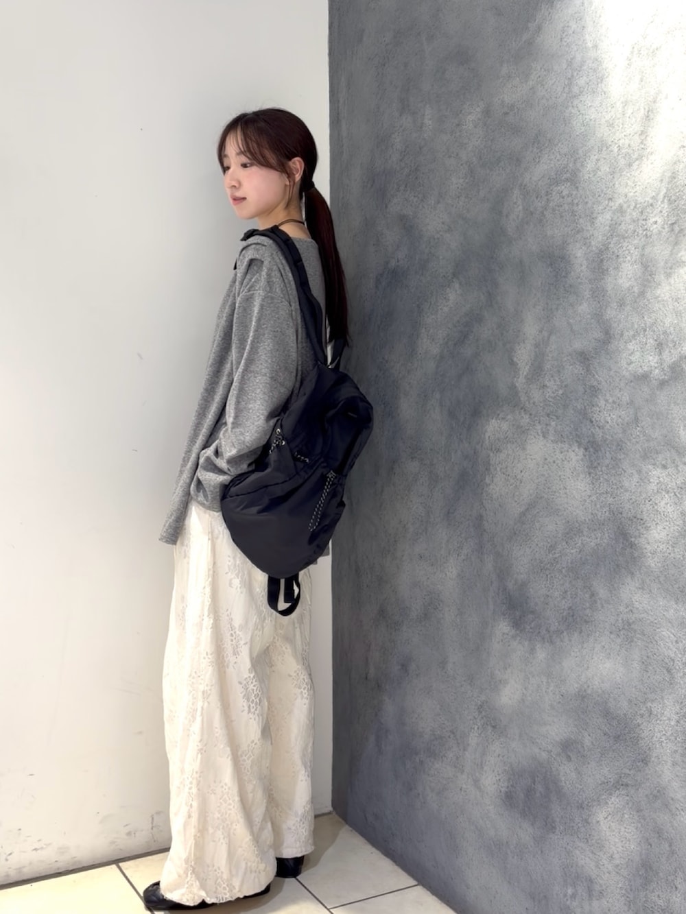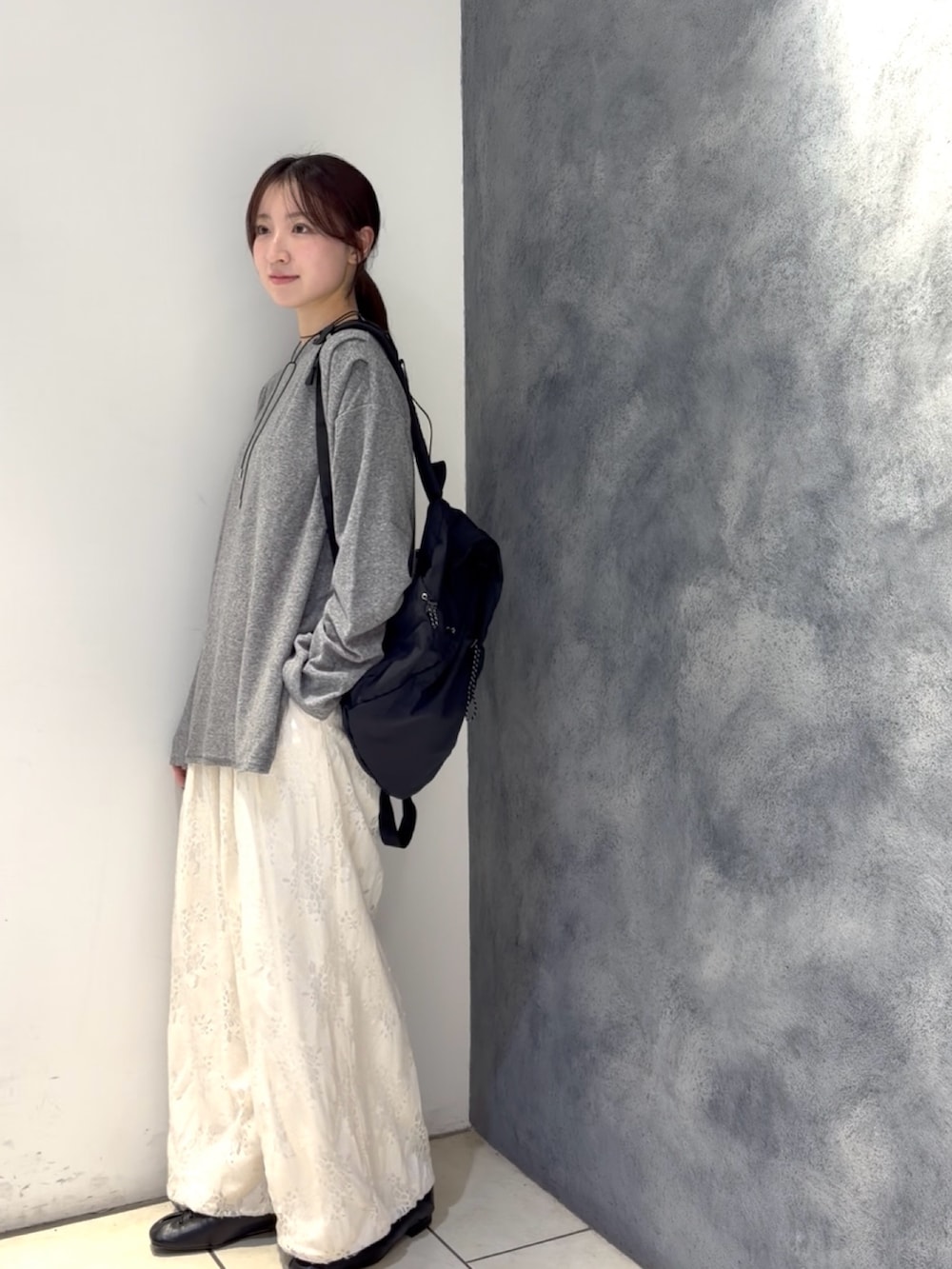 ゆったりとしたプルオーバーに、繊細なレースパンツを合わせたリラックスフェミニン🤍