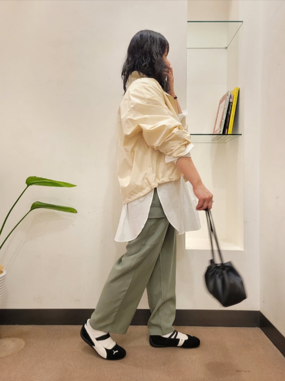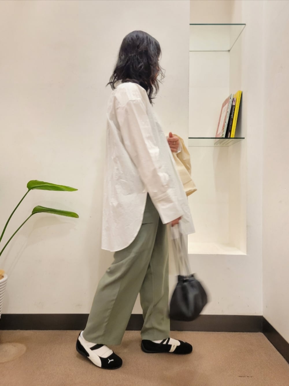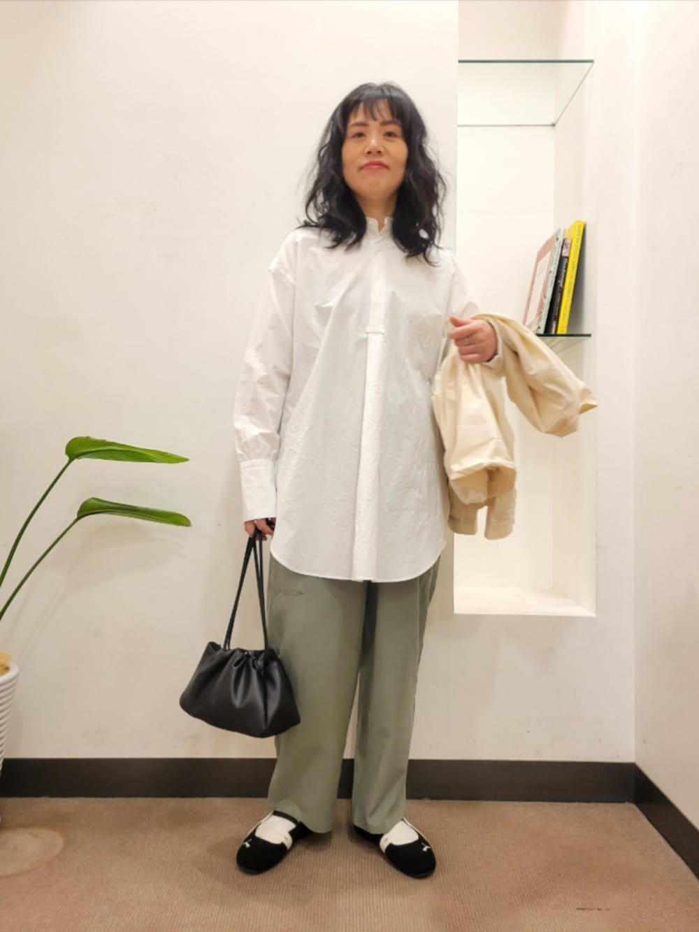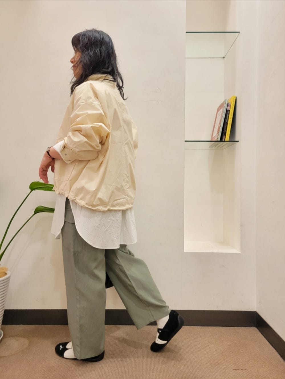 シャツはゆったりで着丈長めで