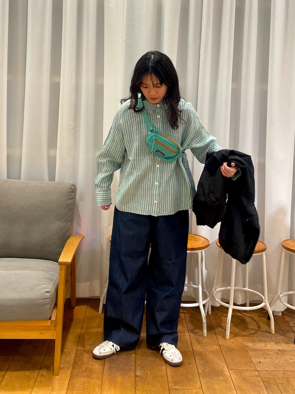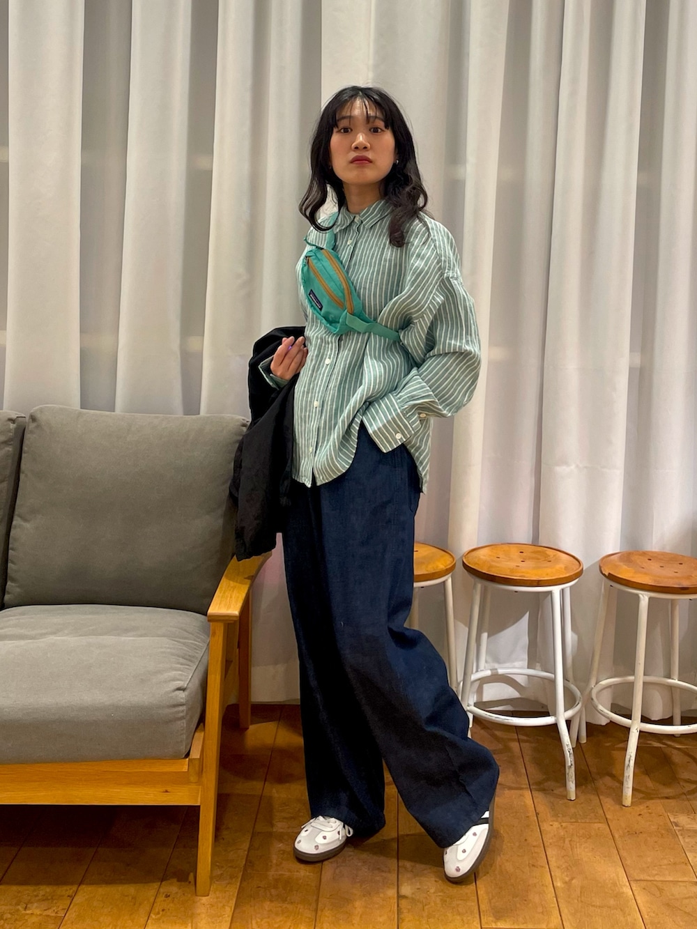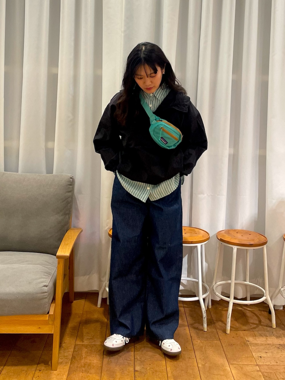 パタゴニアのポシェットもミントカラーでシャツと合っていて可愛いですね❤️‍🔥