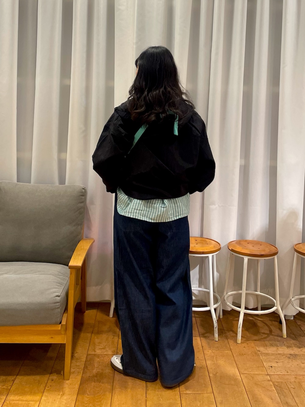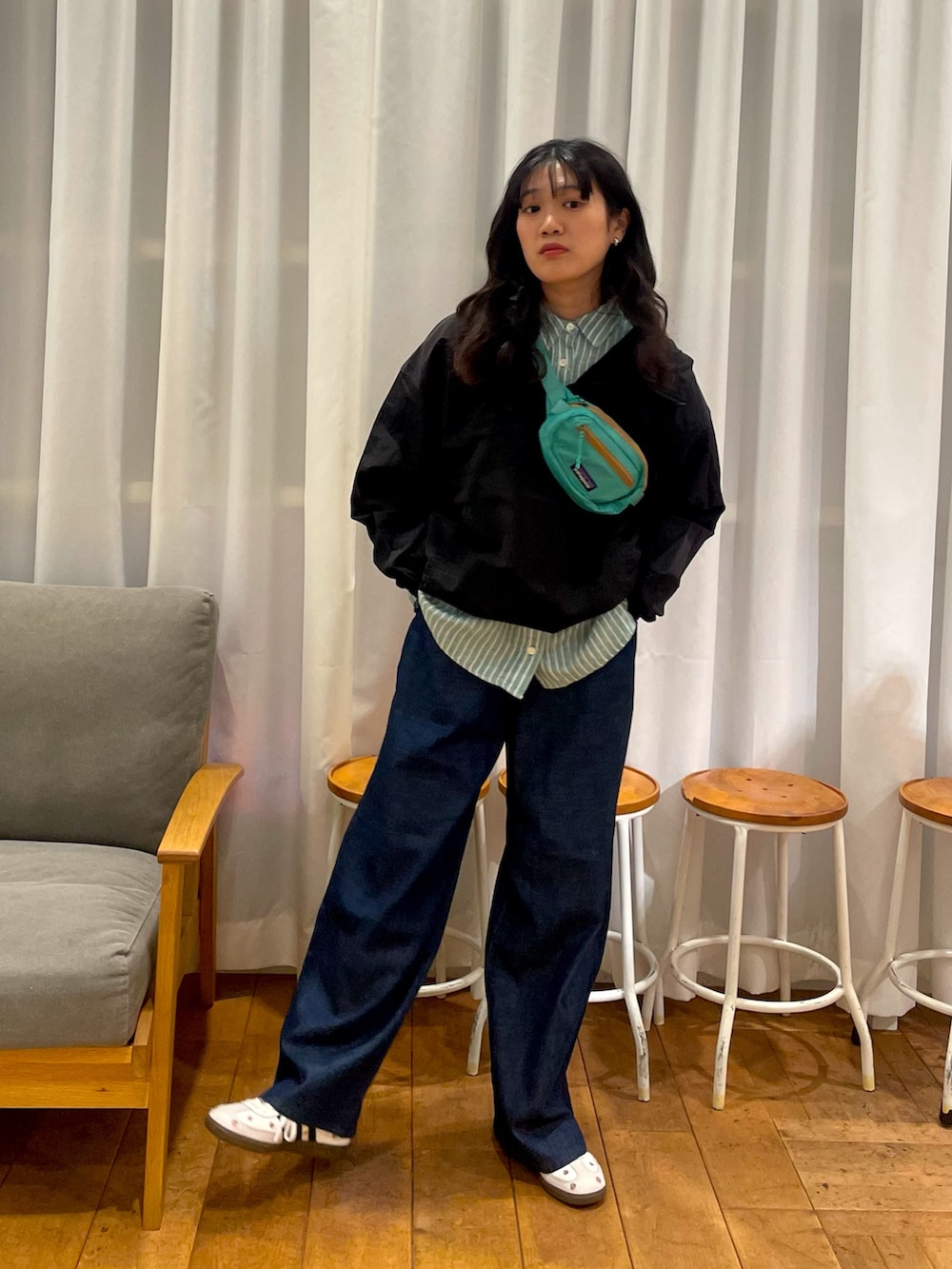 ゆるっとしたWranglerの別注デニムパンツが、より可愛さを引き立たせています!