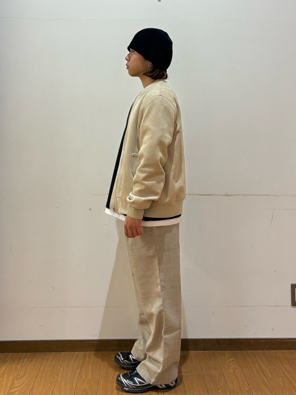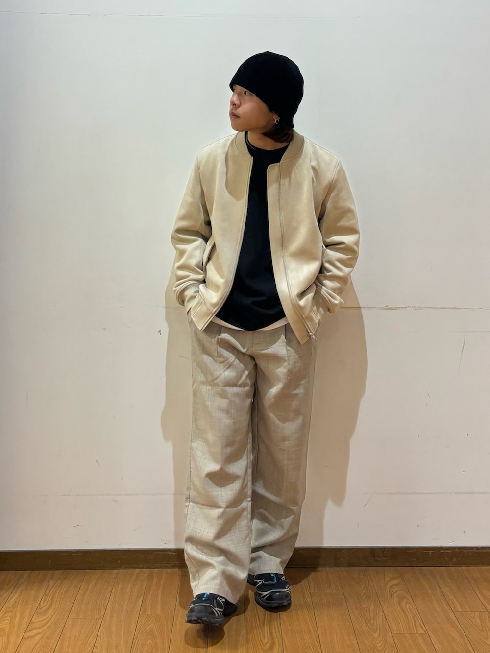 トップスのブルゾンはフェイクスウェードの肌触りが良く、とても柔らかいです!サイズ感もゆとりがあり、重ね着しても問題ないです。