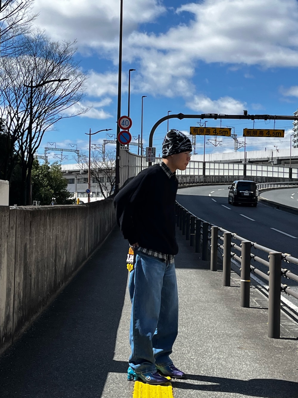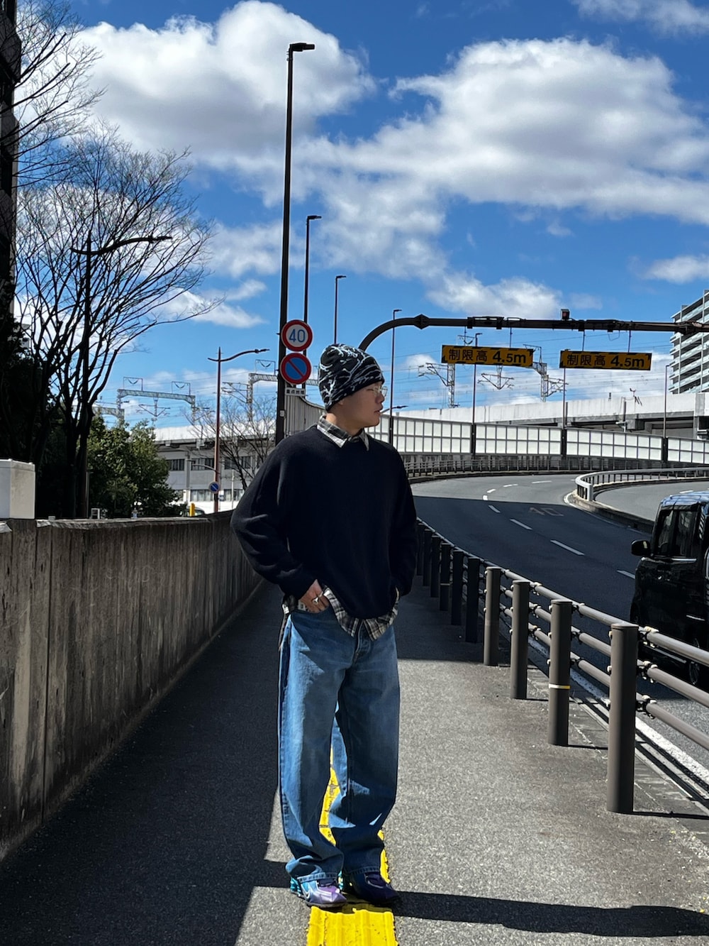 ニットにシャツをレイヤードしてます!このニットシースルーでインナーをちょい見せできる優れものです!