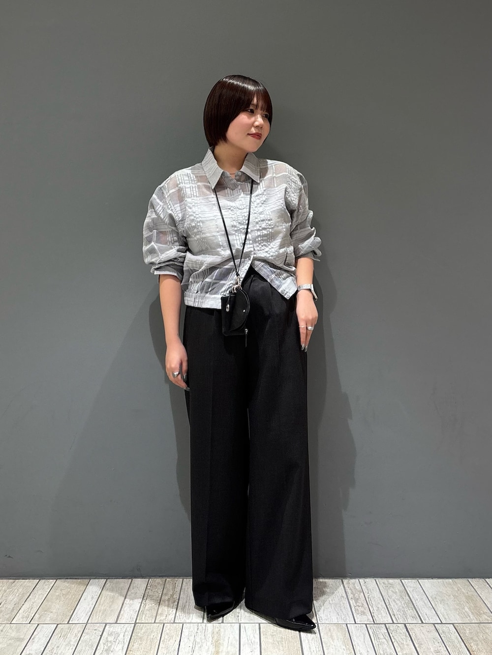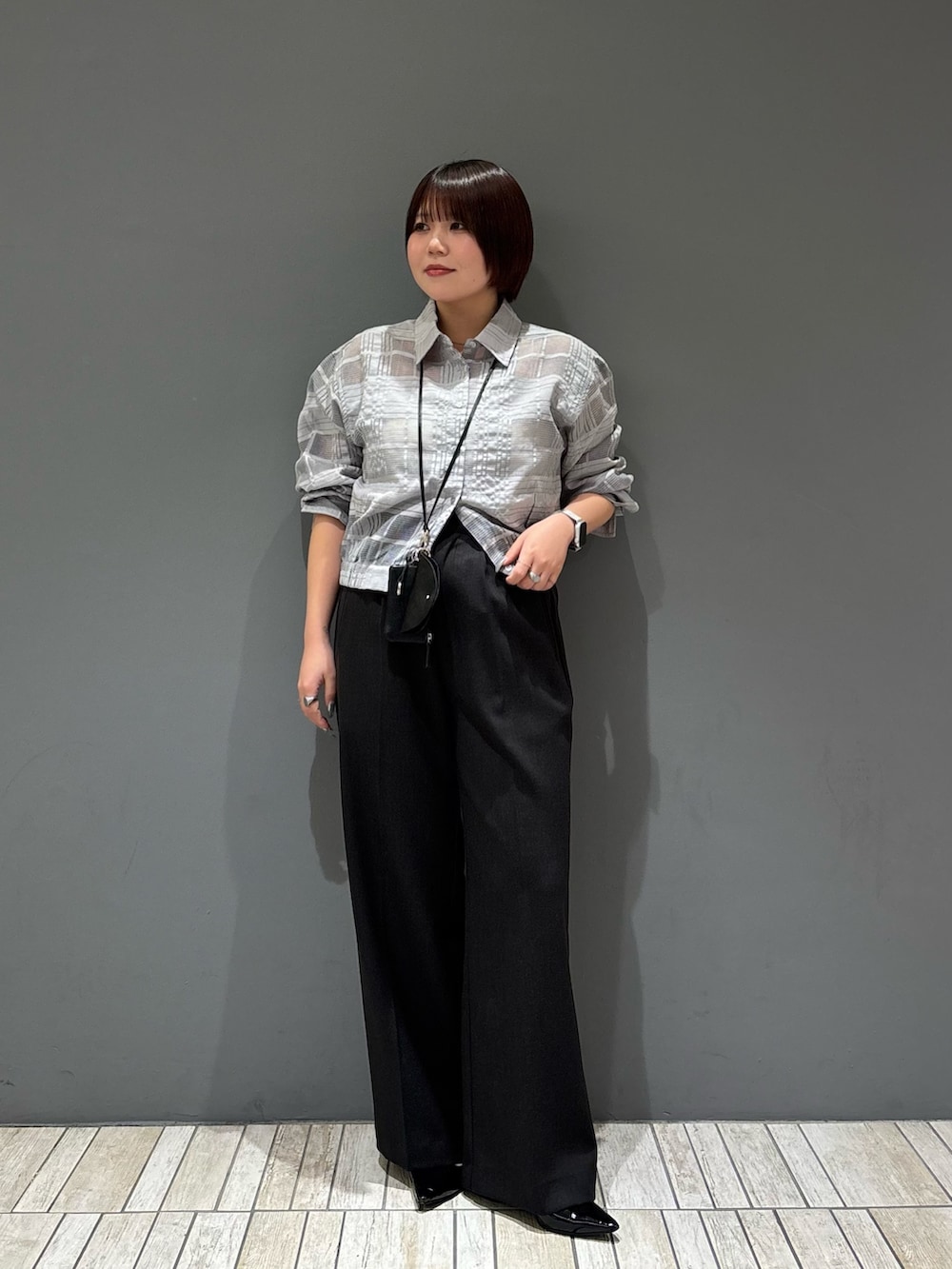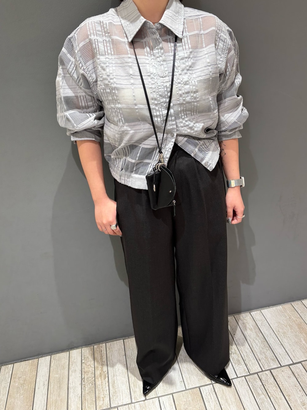 ・シャツがコンパクトなサイズ感なのでストレートシルエットのパンツ合わせでIラインのシルエットに.ᐟ.ᐟ.ᐟ