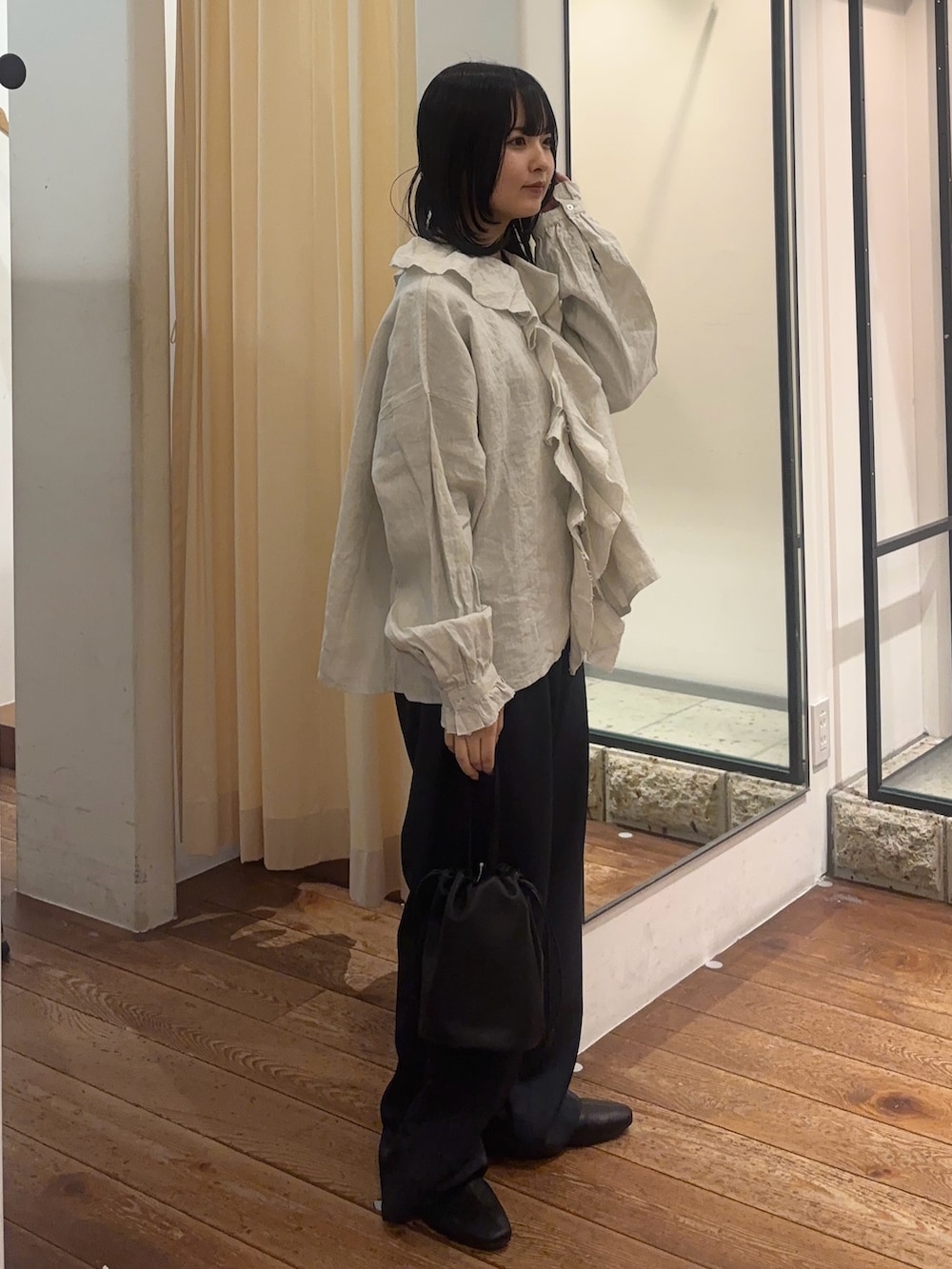 かぐれリネンフリルカラーシャツ- カラー:
