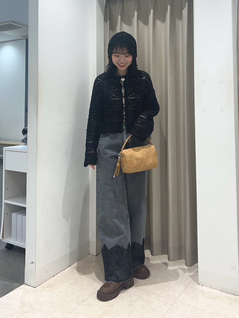 SENSE OF PLACE『洗濯可』レースアミエリツキニットカーディガン- カラー: