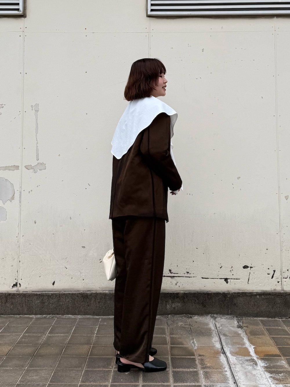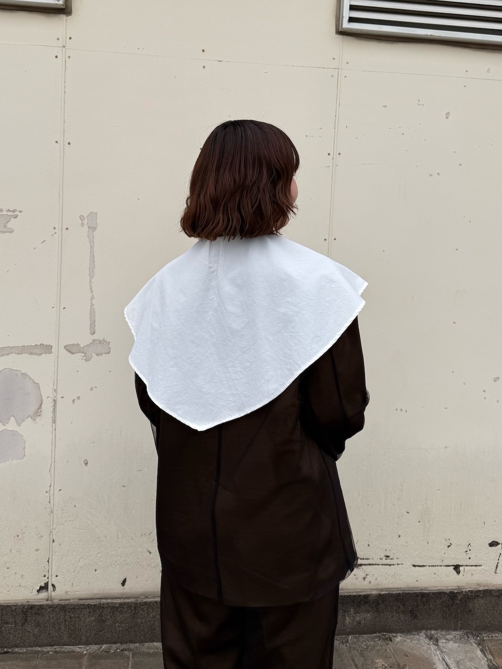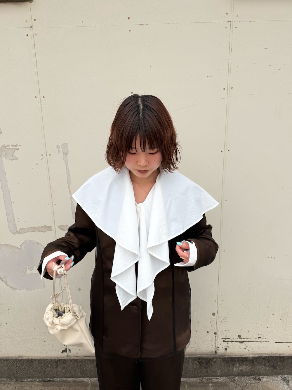 チュールのセットアップだと少し寂しい感じがしたため、大きめな襟のブラウスを中に仕込んだのがポイントです🙆