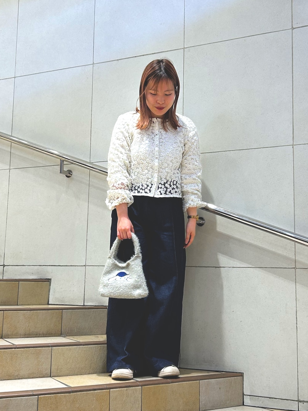 アイシナモンのもこもこバッグで柔らかさをプラスし、シンプルながら女性らしい上品な雰囲気にしました✨