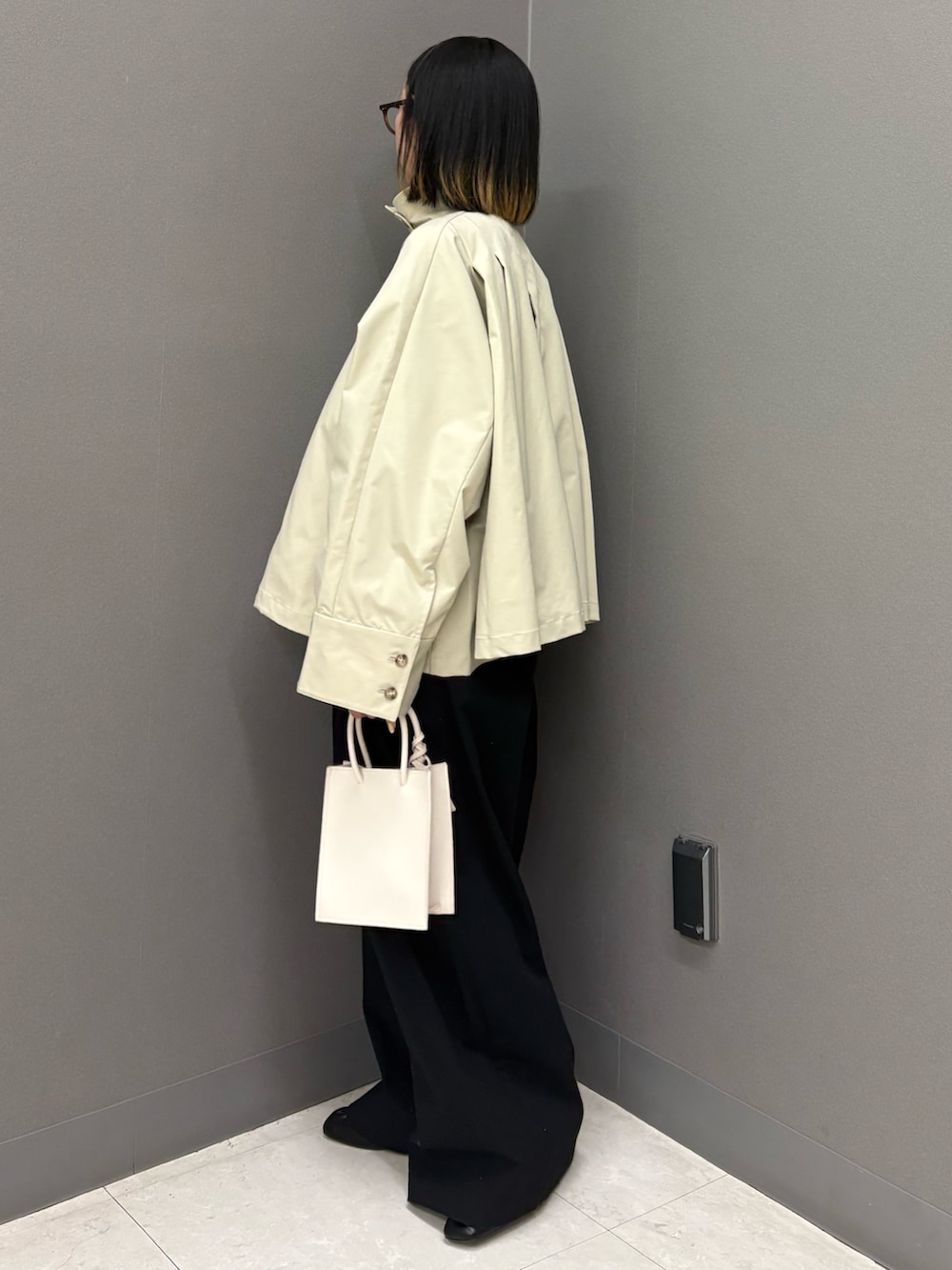 マントコートは、いろんな着方ができてそれぞれ印象が変わる+横から見たシルエットも可愛いので、ぜひ店頭でお試しください♪