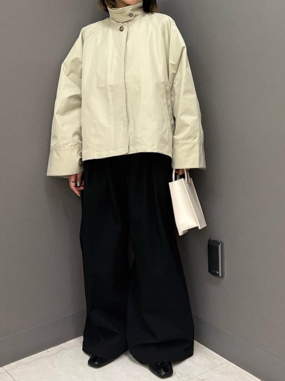 マントコートとタックパンツ、どちらもシンプルだけど、形が綺麗で、デザイン性もあるので活躍すること間違いなし!