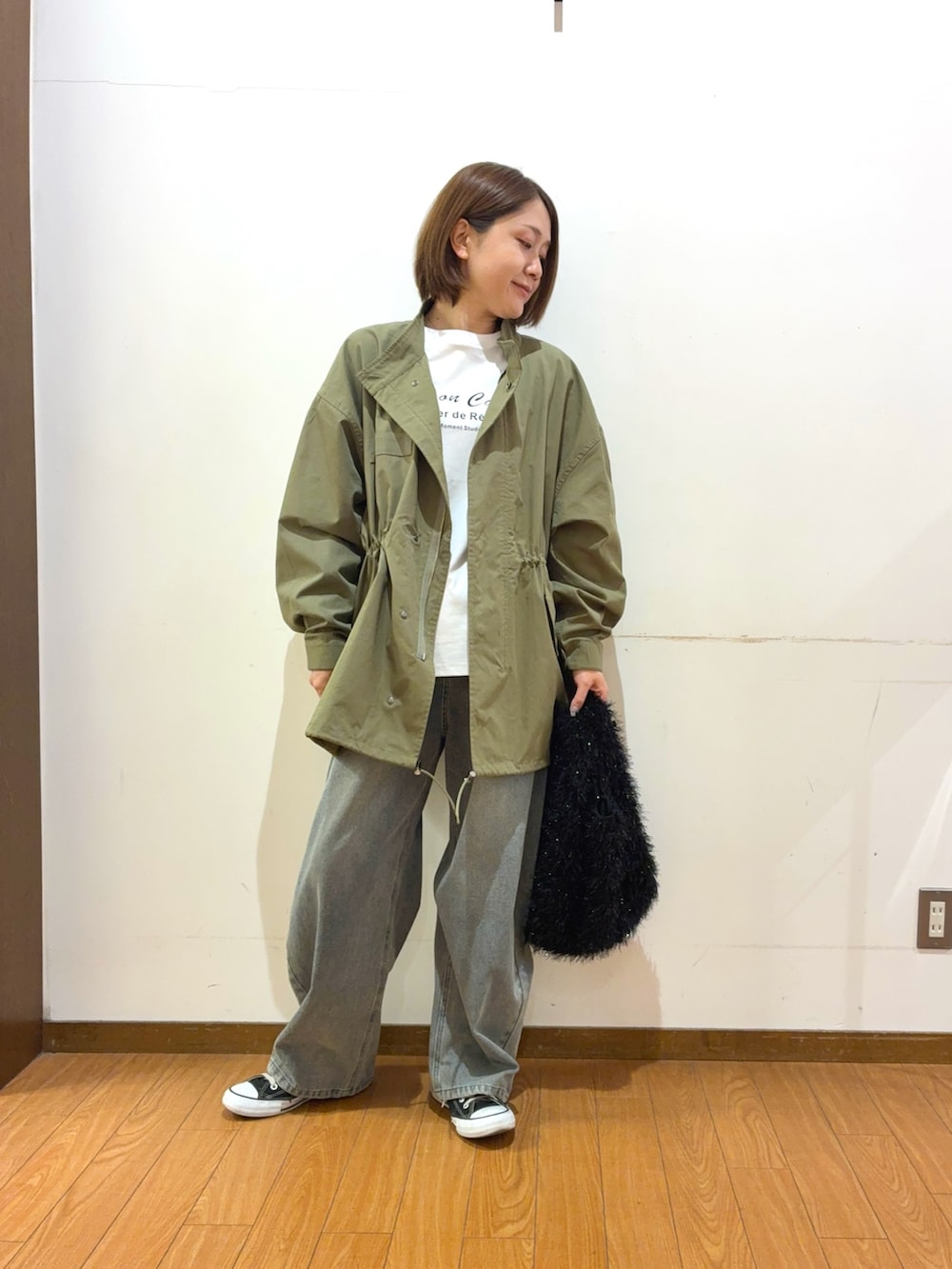 ハリ感ある生地でカジュアル過ぎず大人っぽく着られます♪