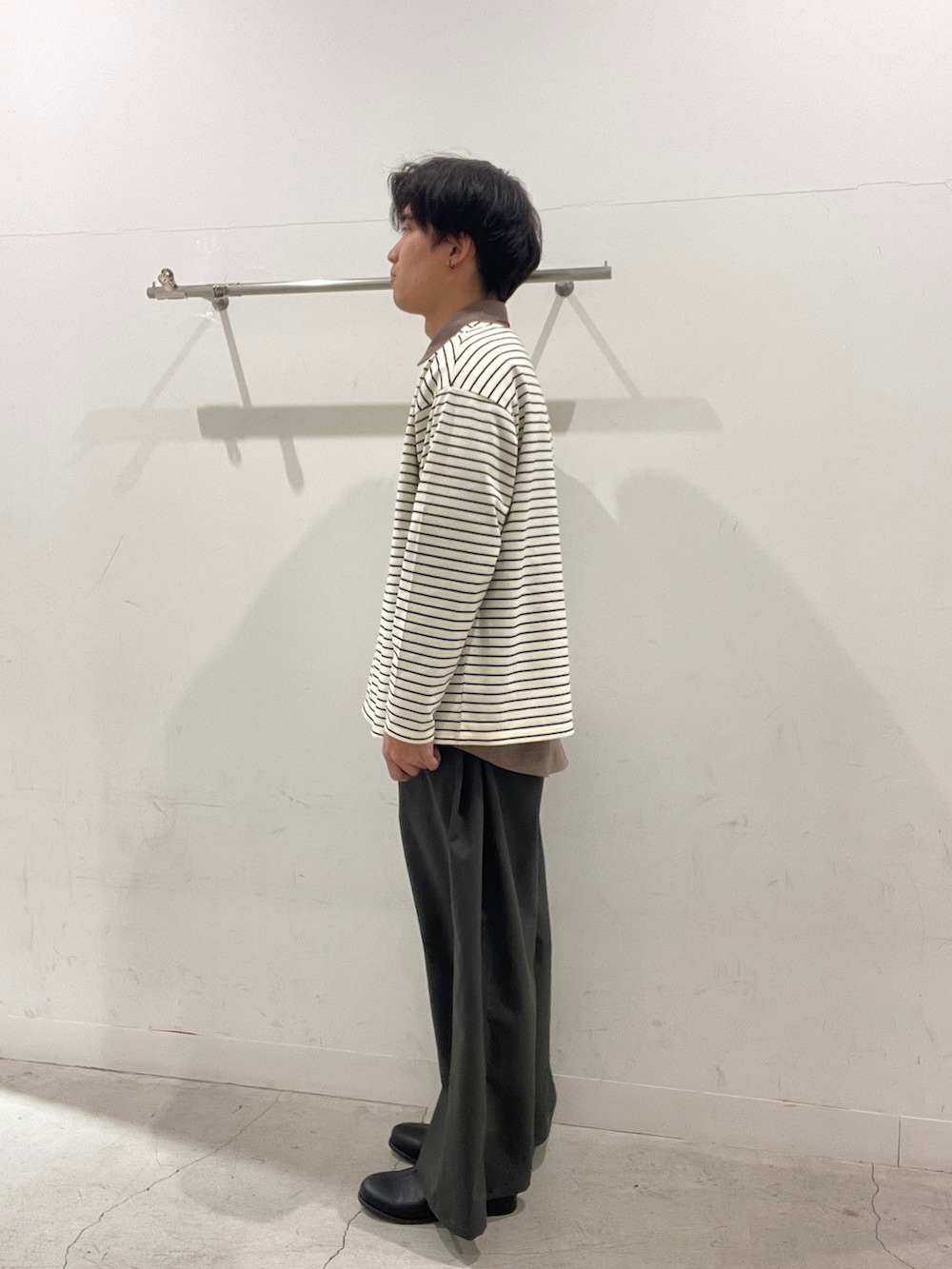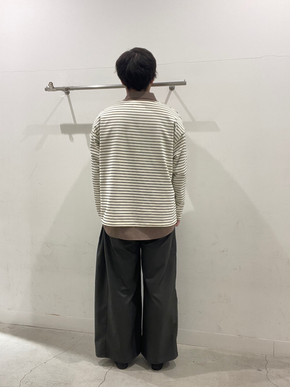 グレーのワイドスラックスでバランスを取り、大人っぽいカジュアルスタイルにしました!