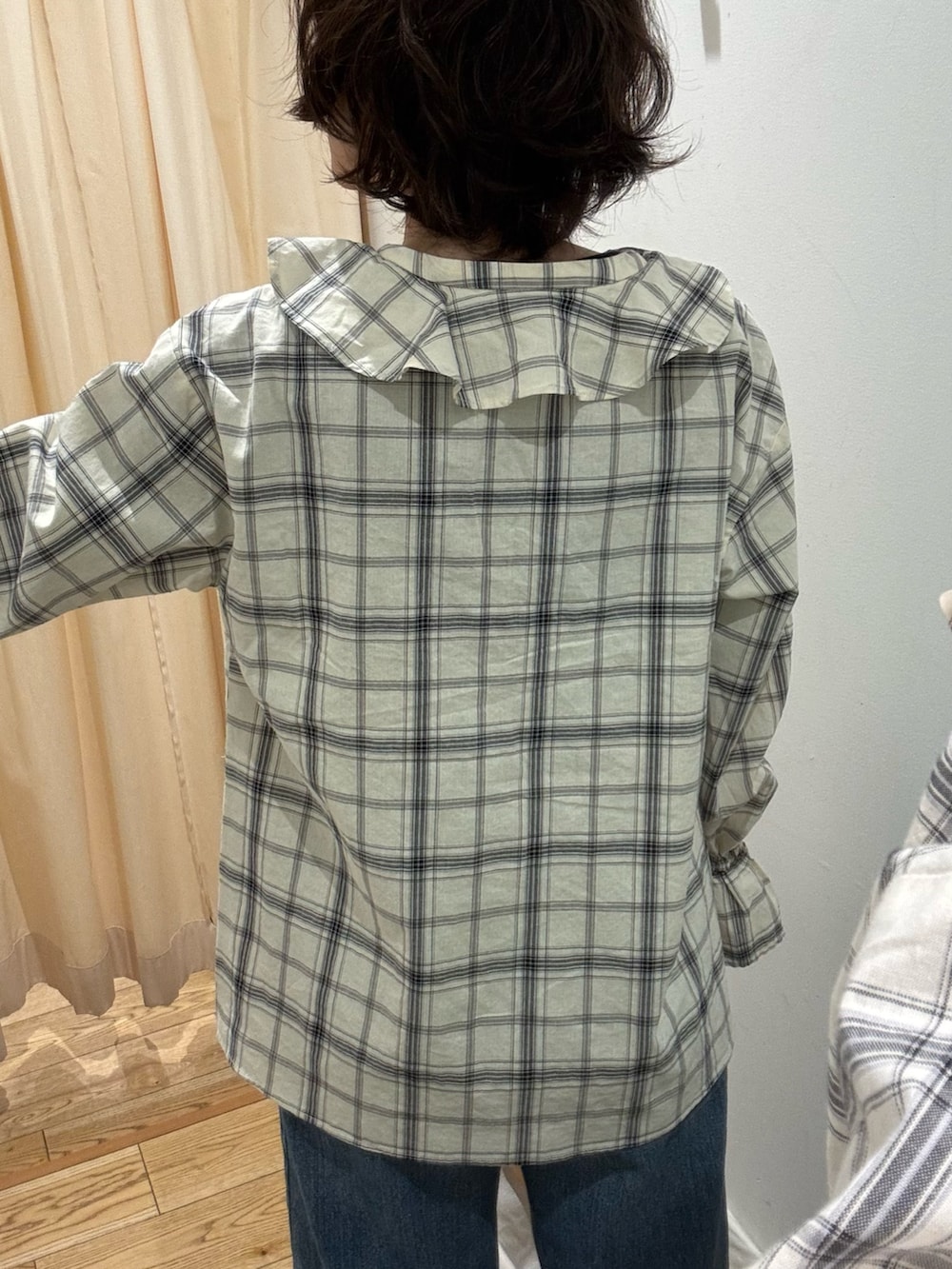 チェックフリルブラウス