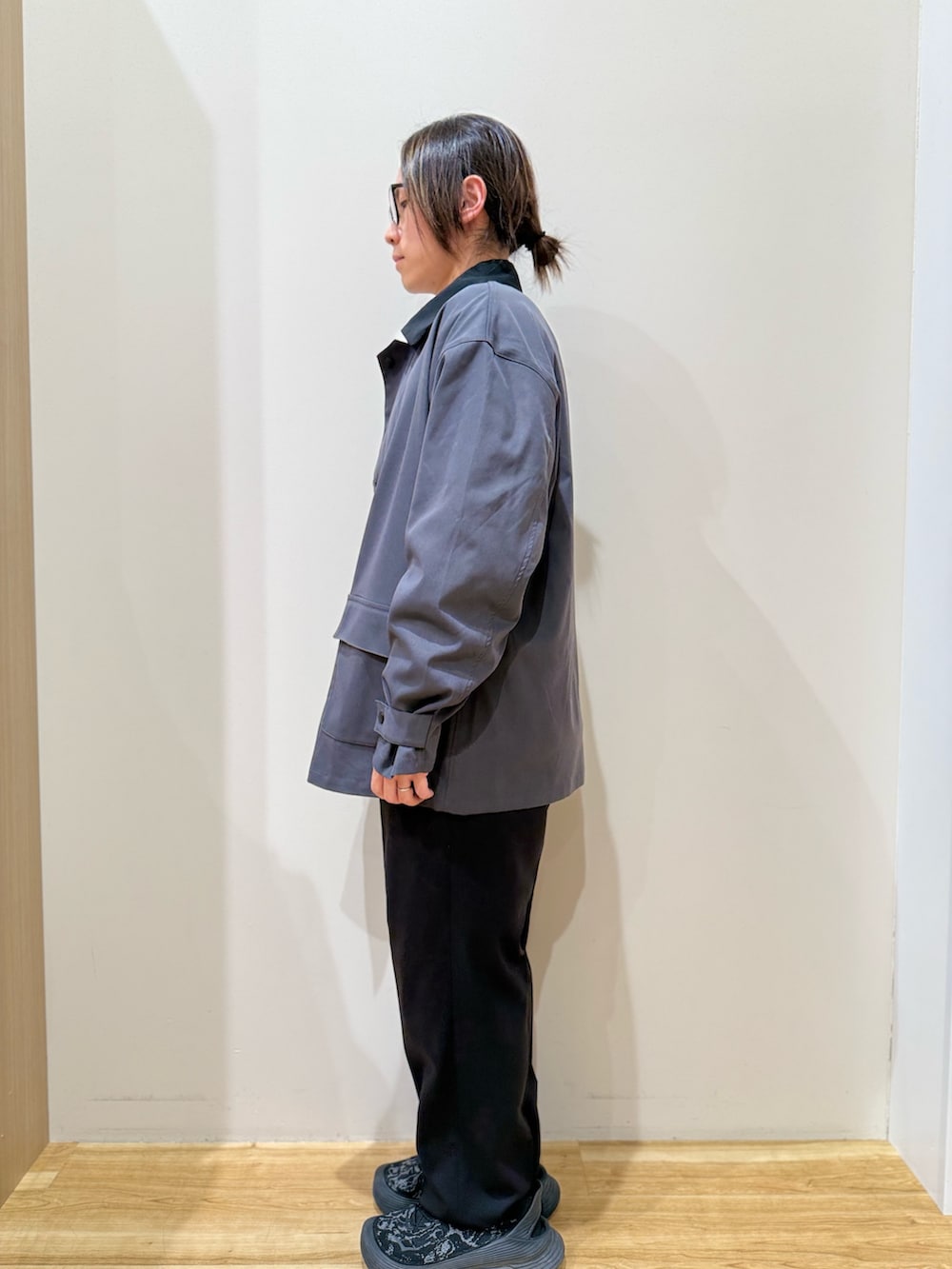 ボトムは2タックワイドトラウザーを合わせて、程よくゆとりのあるシルエットに仕上げました。