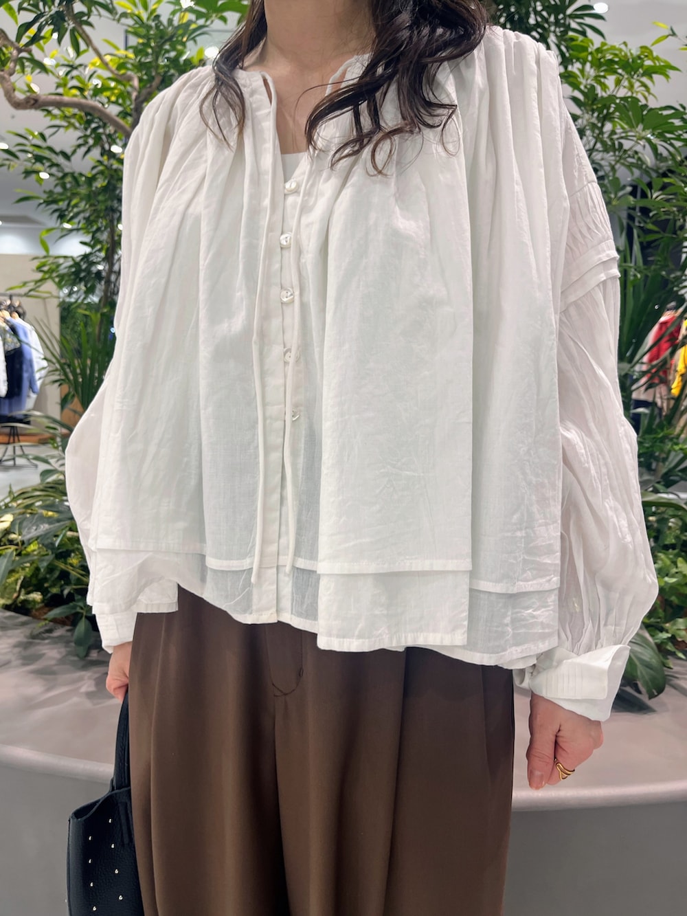 コットンボイルギャザーショートブラウス