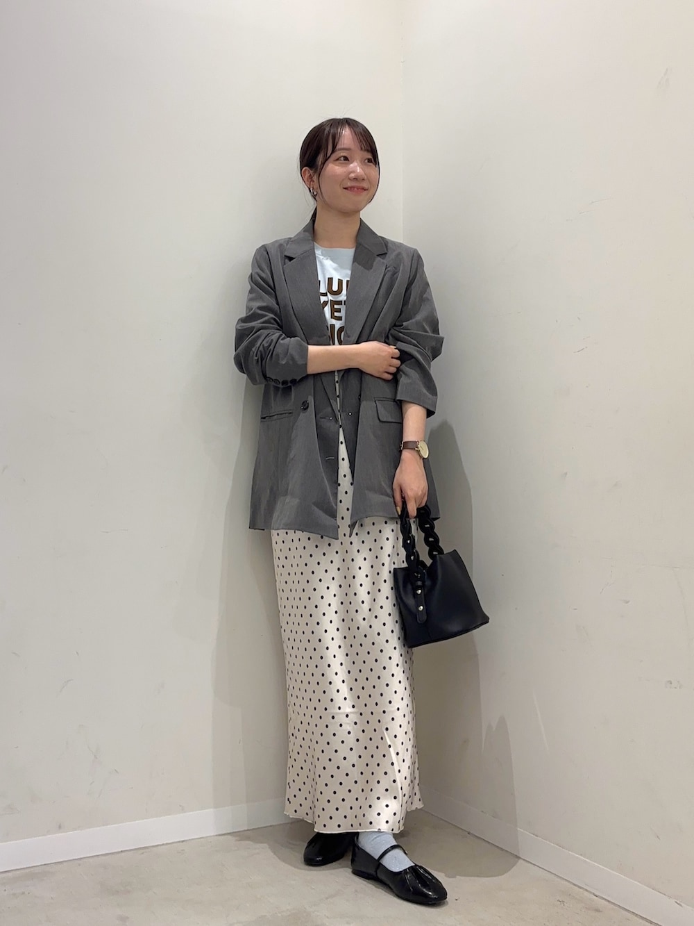 ドットスカートをメインにコーデを