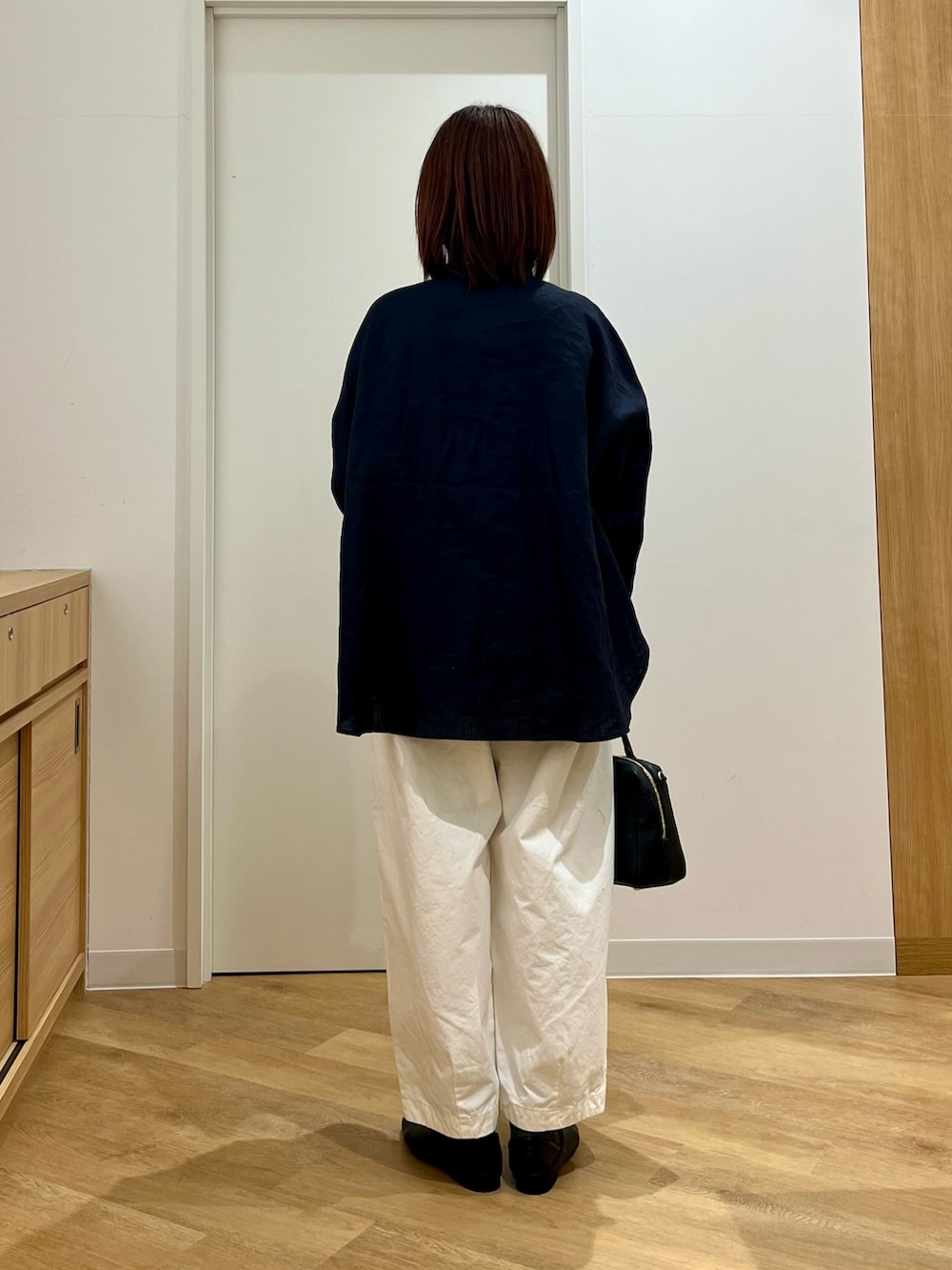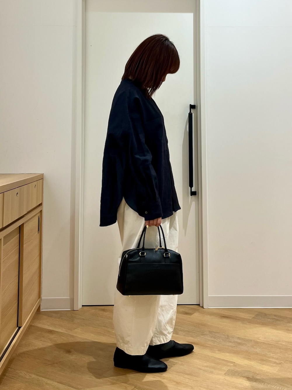大好きなネイビーに再入荷したパンツを合わせました。
