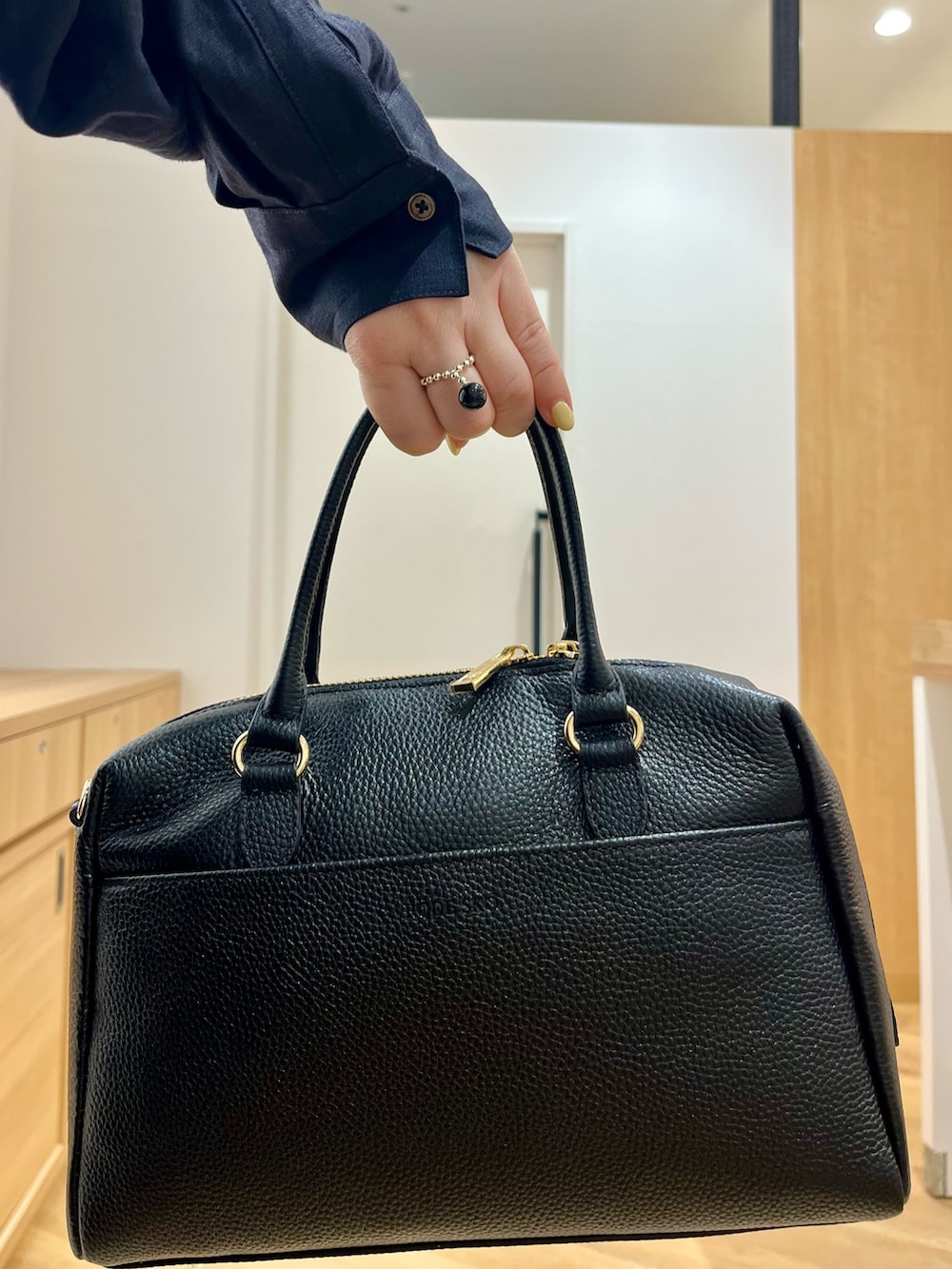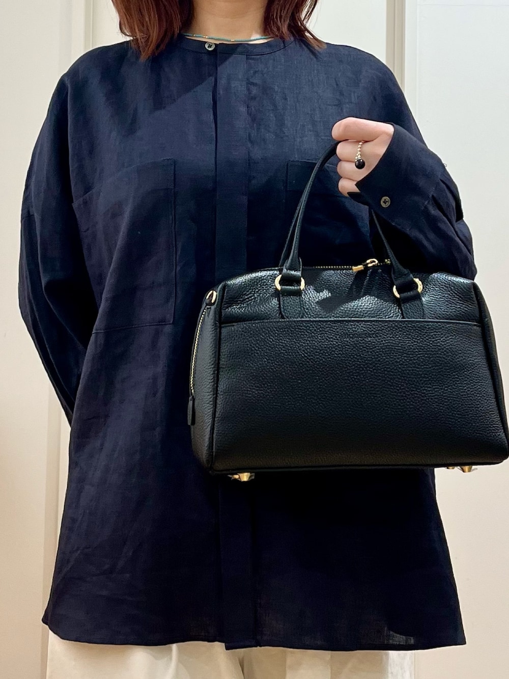 バッグはロデスコのリアルレザーのボストンを合わせました。