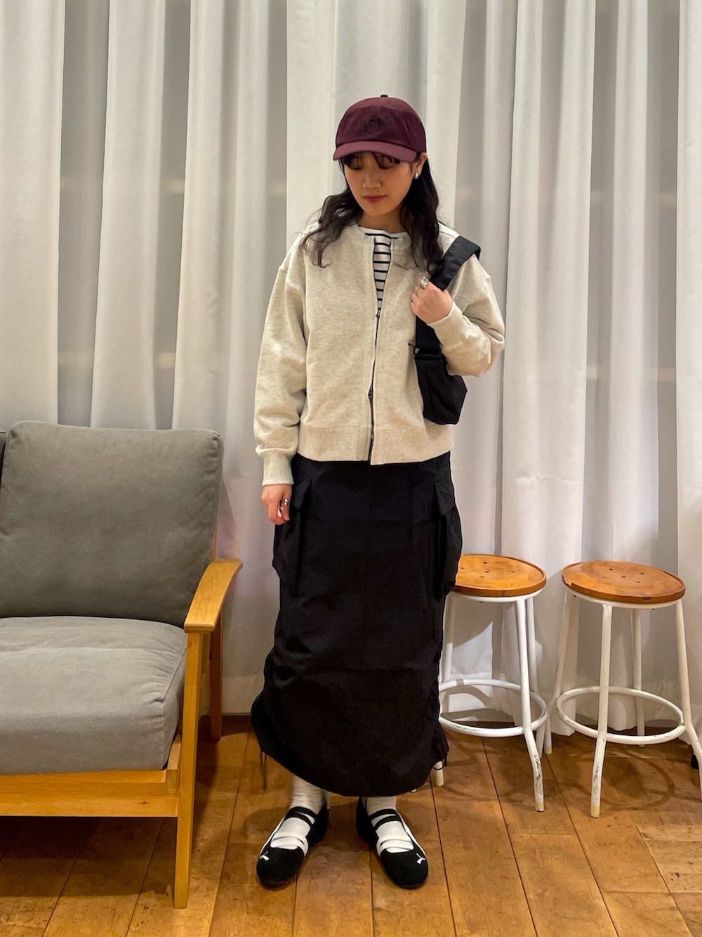 オートミールカラーのスウェットジップカーディガンが春らしい素材感で使いやすいです!