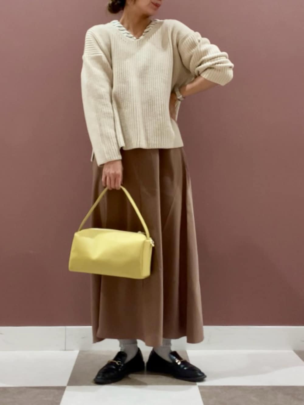 今の時期はニットを着てもう少し暖かくなるとキャミワンピースだけでも可愛く着て頂けます!