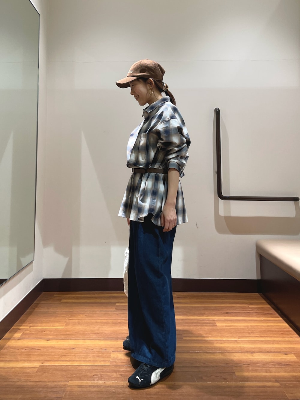 オーバーサイズのチェックシャツなので、お尻まですっぽり隠れて体型カバーになります‼︎