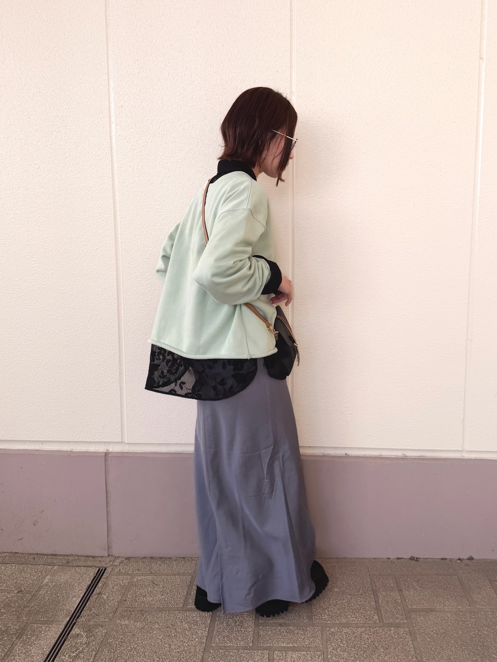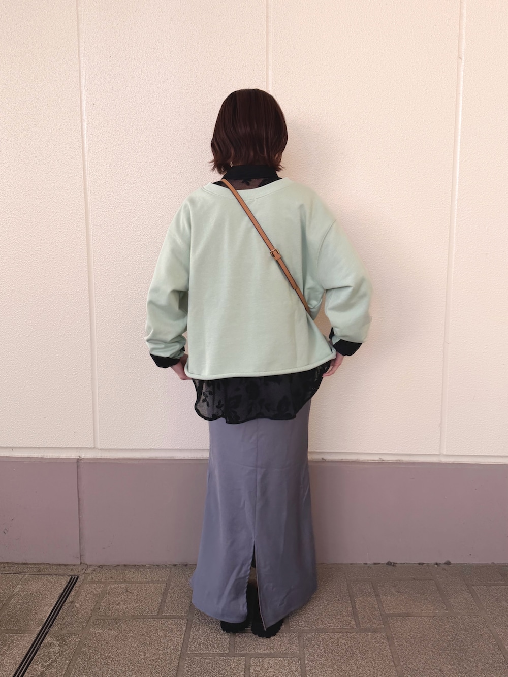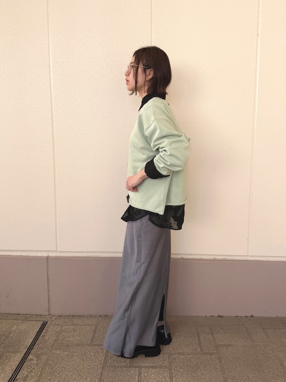 あったかくなってきましたね☘️と、いえど、、まだ少し肌寒い日にスウェットにレイヤードできめてみました😏今回はインナーで着ましたが前を開けて羽織りとして夏場にも大活躍します♪