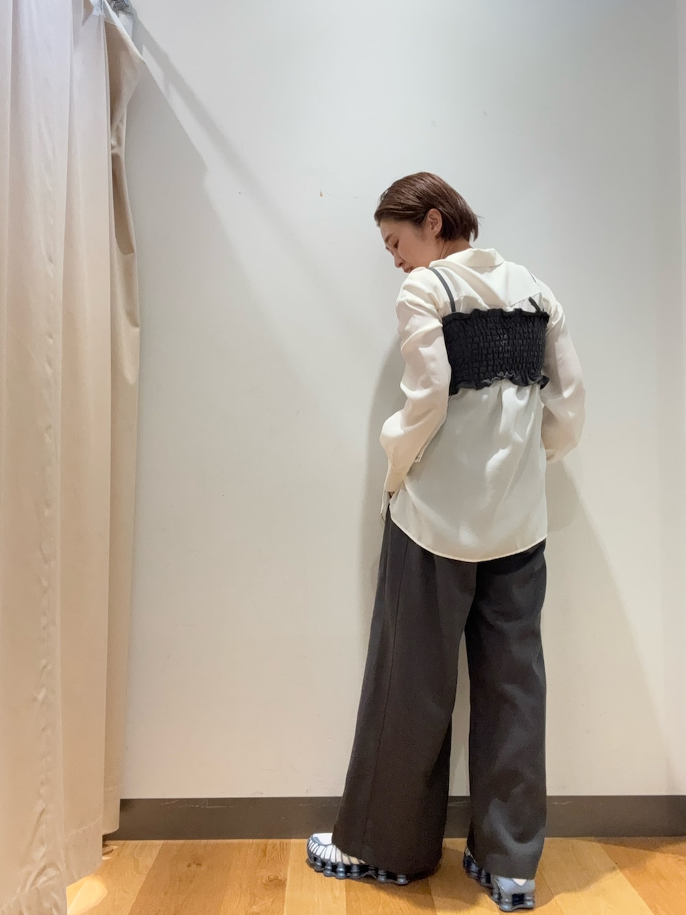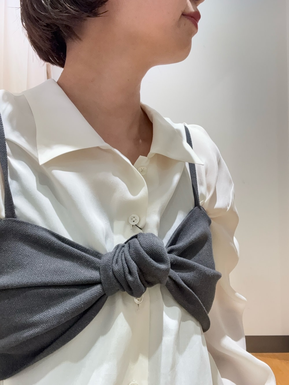 トレンドのビスチェは光沢のあるキュプラシャツと合わせて大人スタイルに🫰🏻