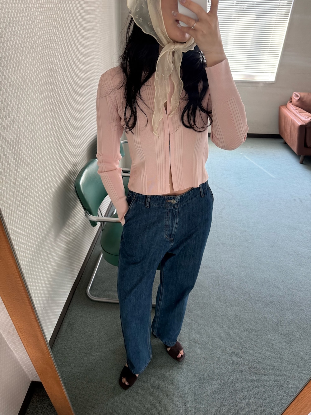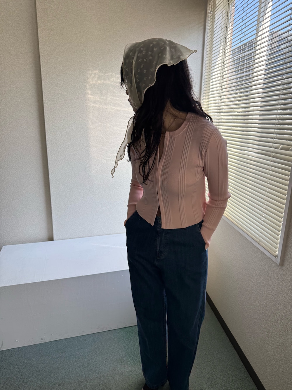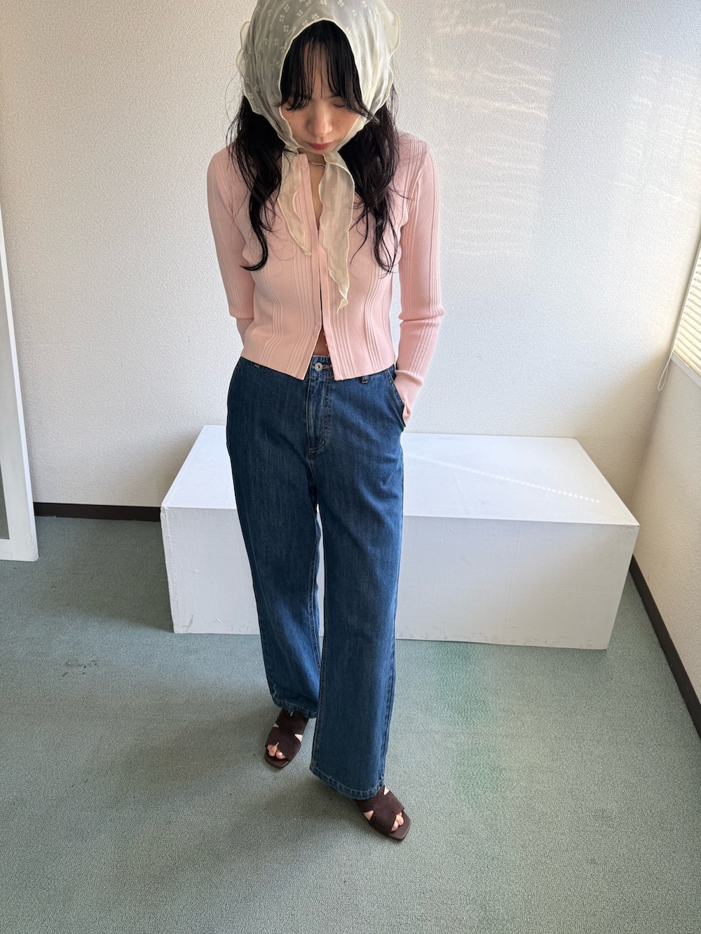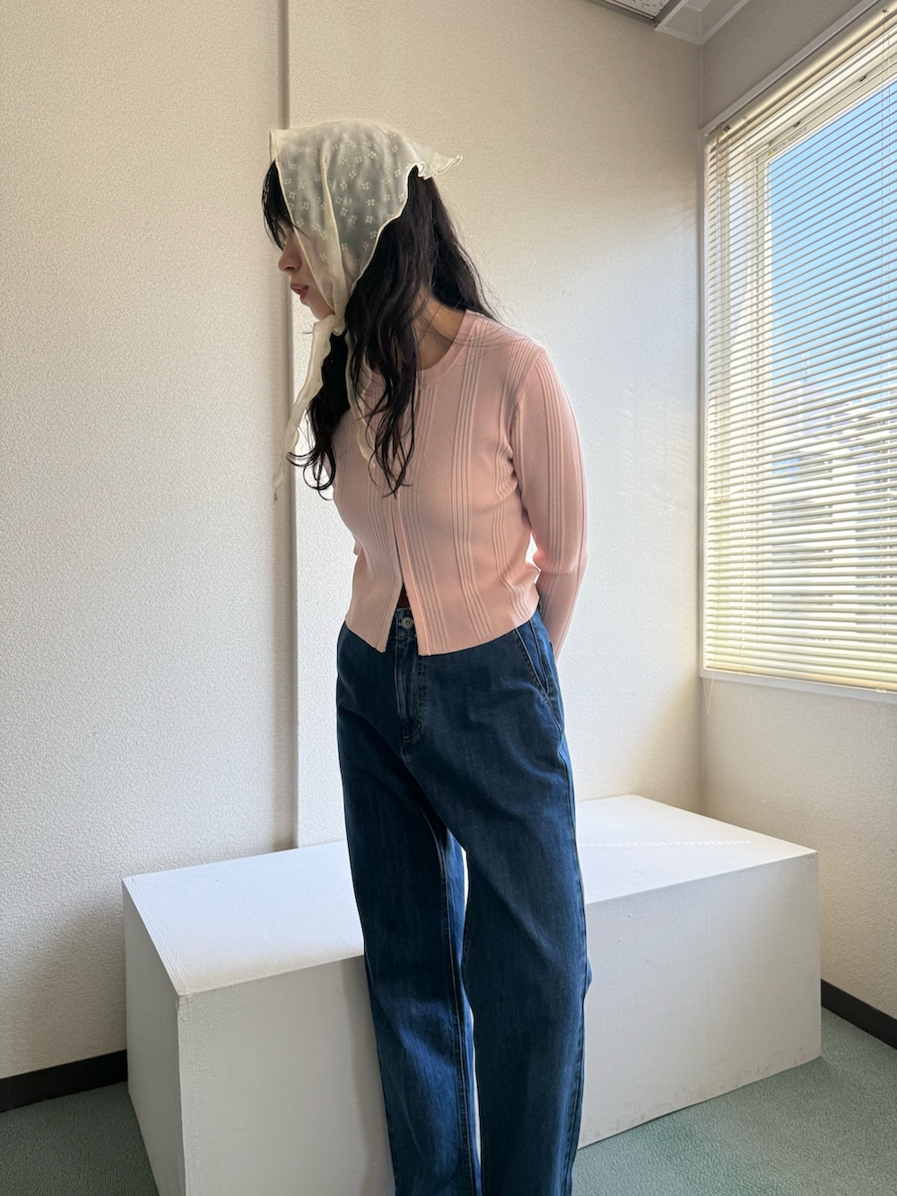 春といえばピンクが着たくなる、ということで、ピンク色のカーディガンをメインにデニムコーデを組みました。