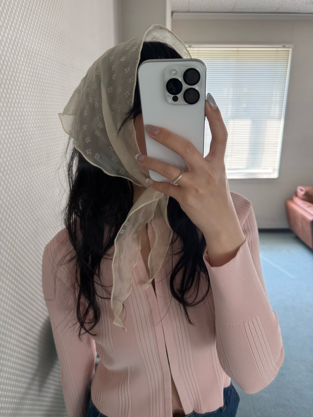 さらに春の王道デニムに合わせて、スカーフをアクセントに。