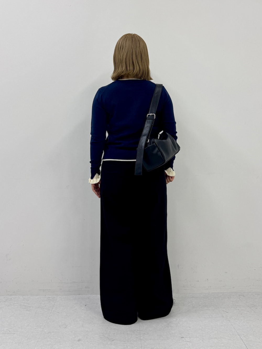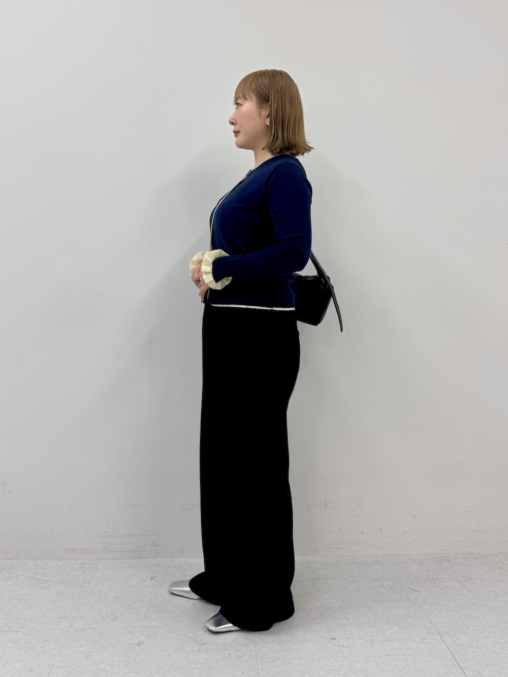 今回は落ち感のあるパンツできれいめにまとめましたが、デニムを合わせればカジュアルにも着られます◎