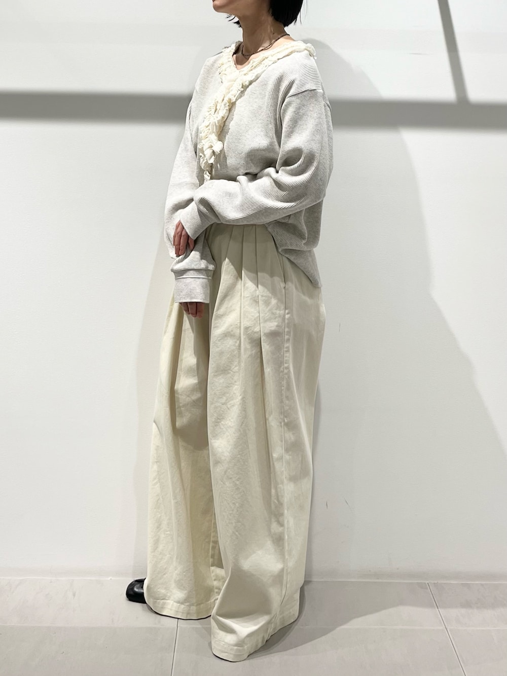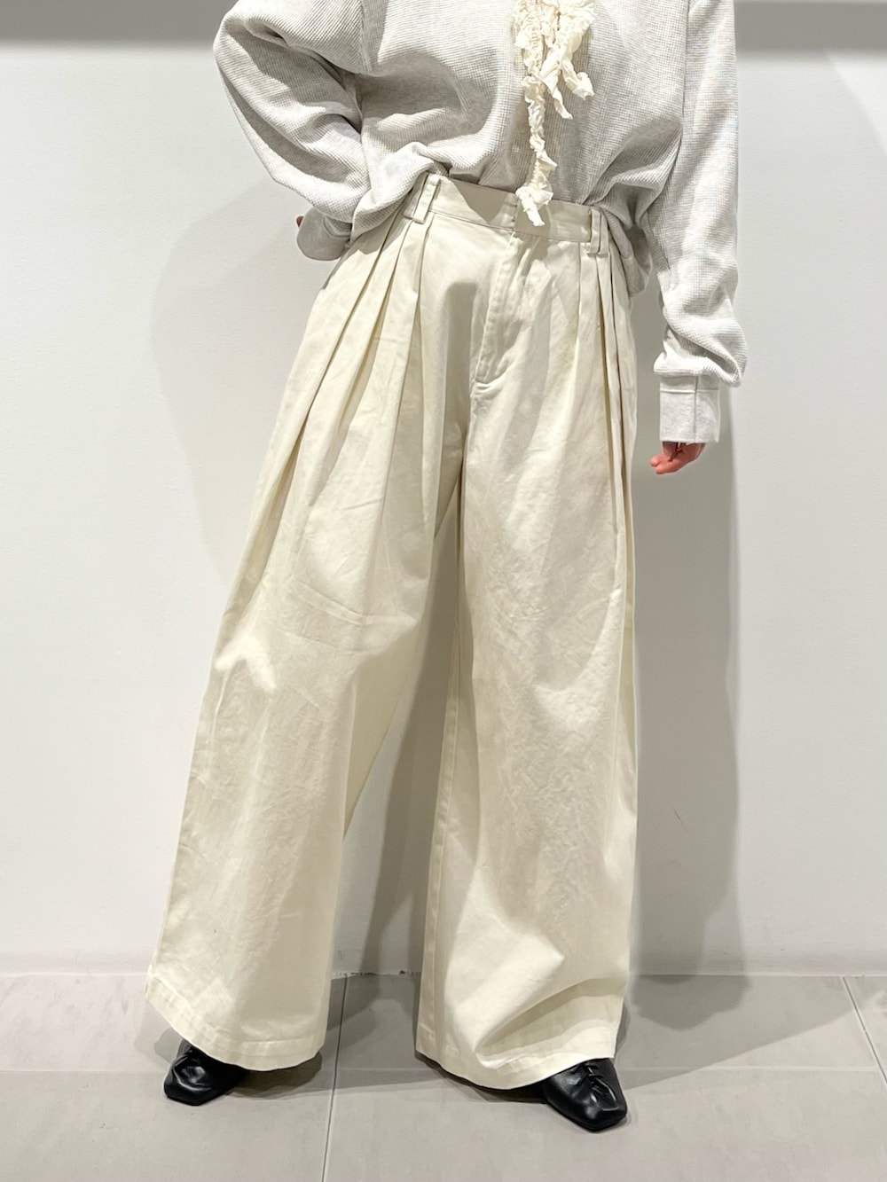 インするとタックのデザインがしっかり見えて、ワイドパンツでもメリハリでます!