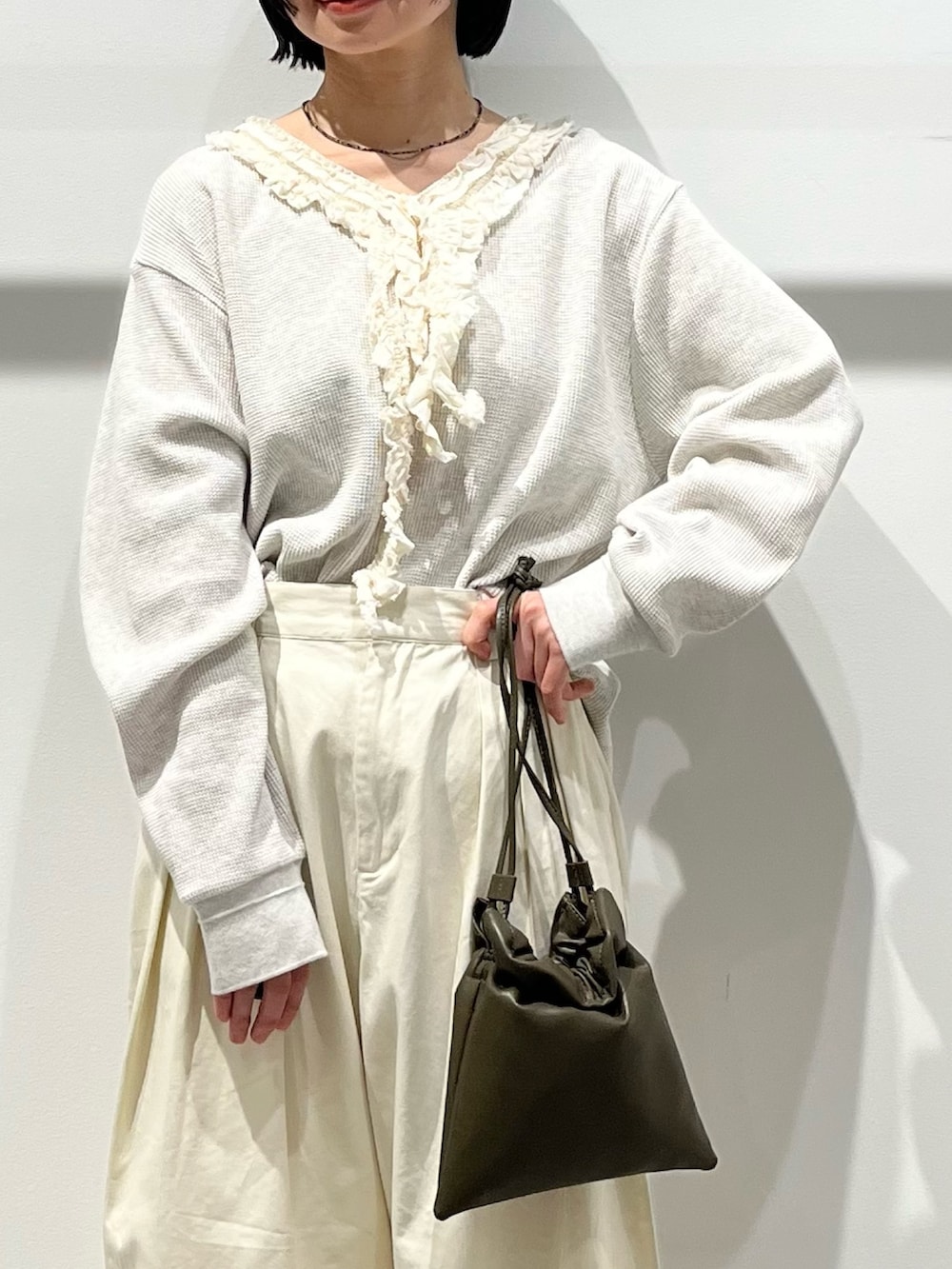 オフホワイトなのでトップスにどんなカラーを持ってきても馴染んでくれます🫧