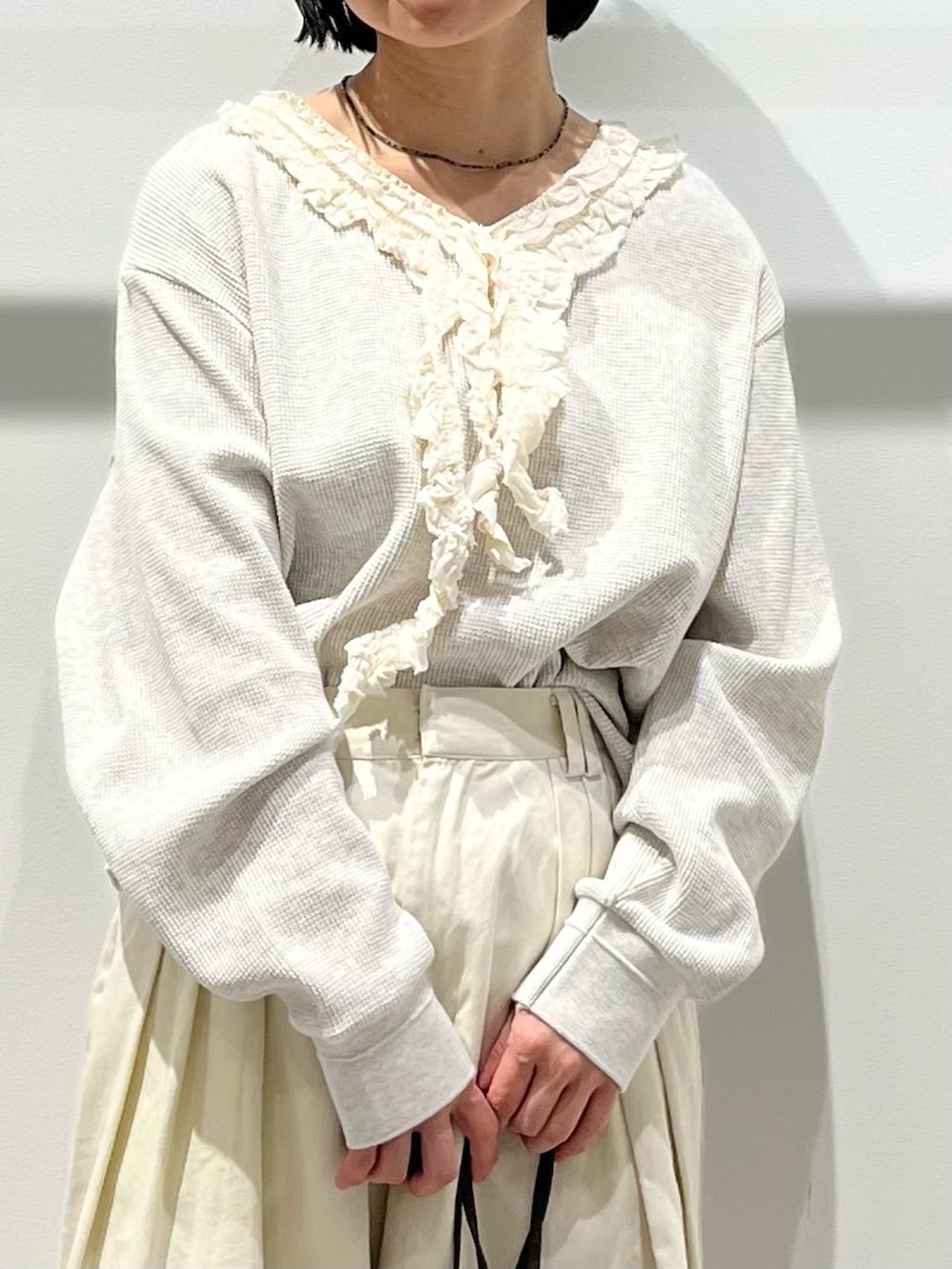 ⚪︎レースフリルワッフルプルオーバー