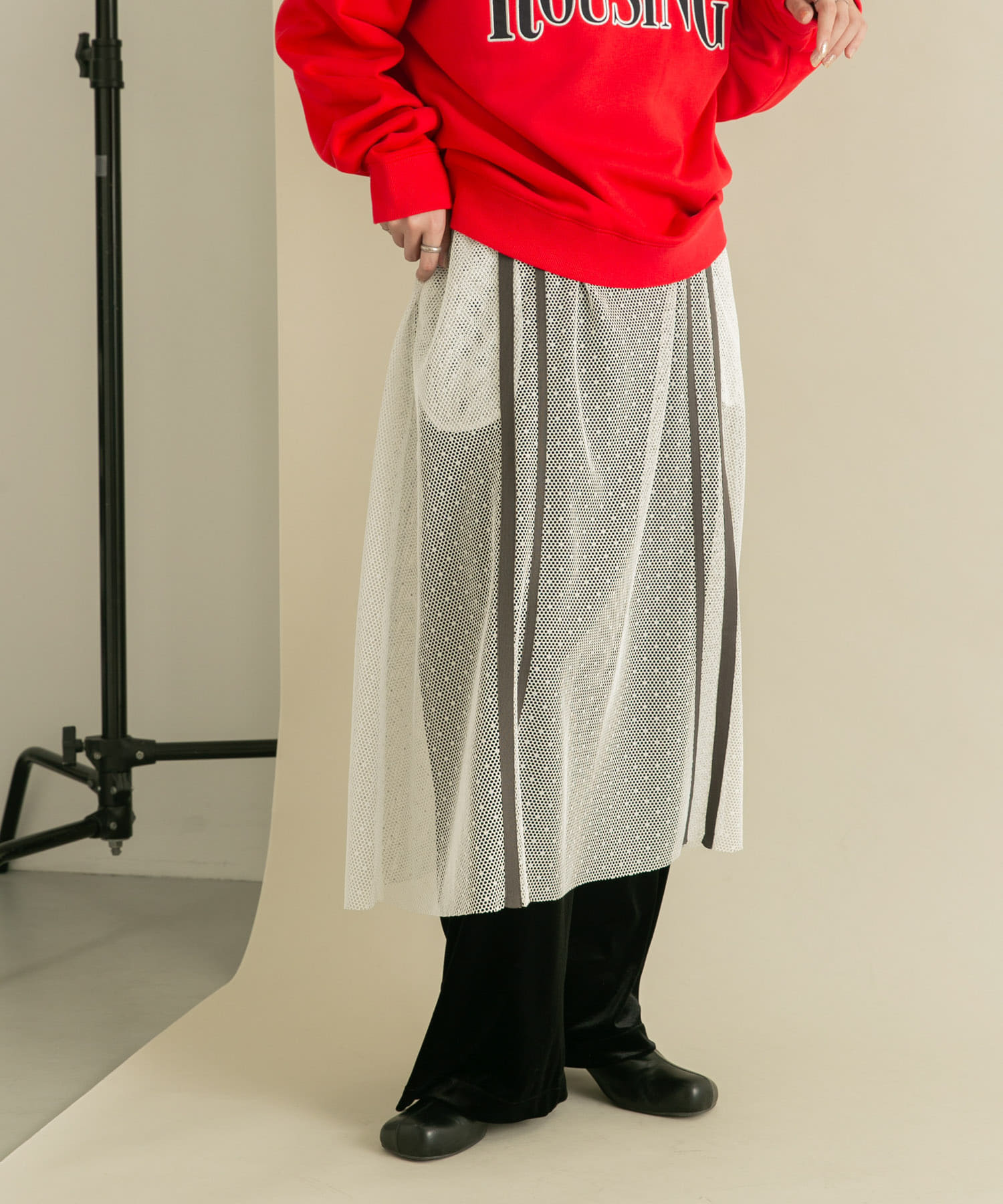 メッシュラインレイヤードスカート