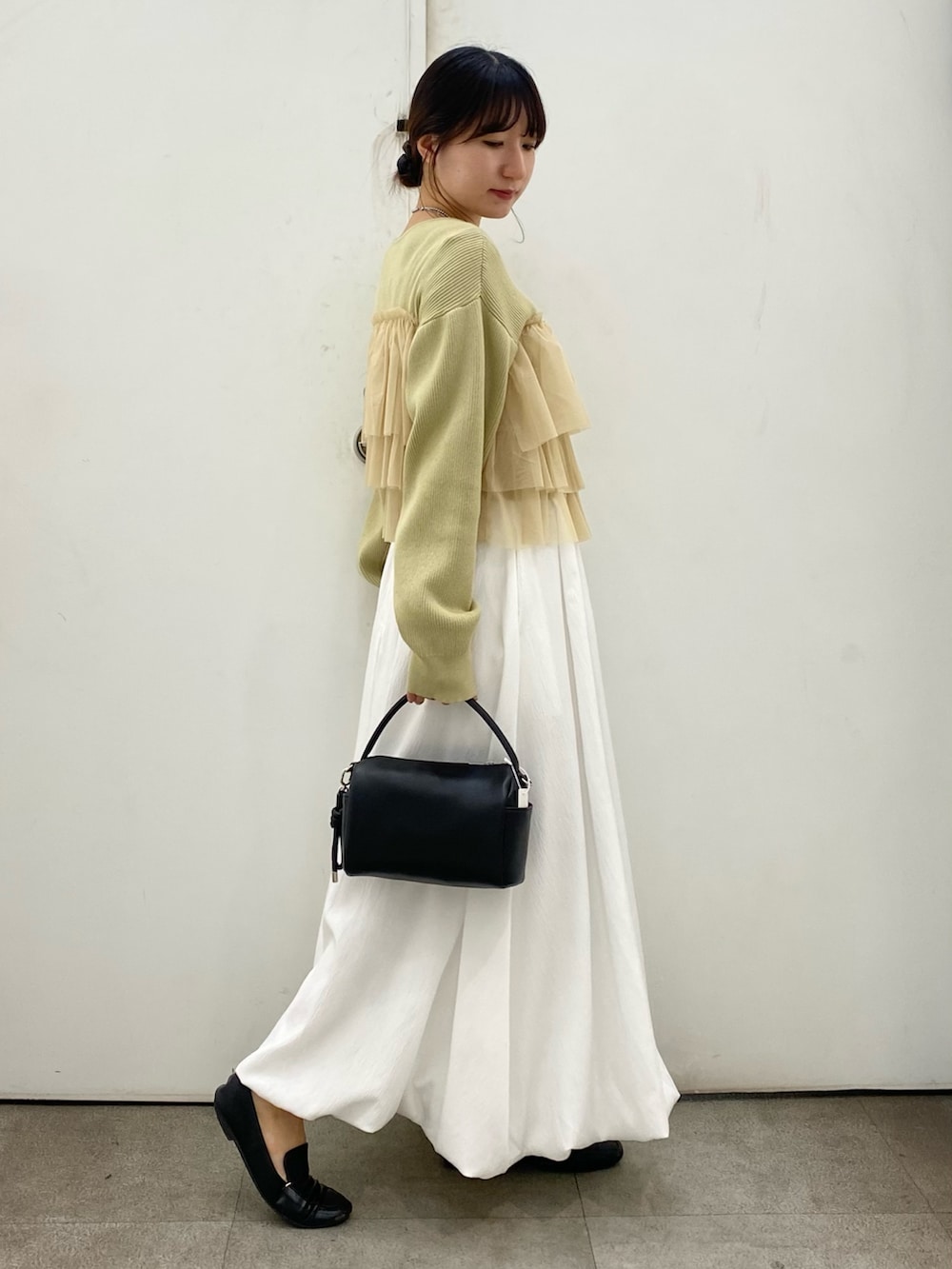 フリルジップのカーディガンはダブルジップになっているので上下少し開けると抜け感出てすっきり見えます!