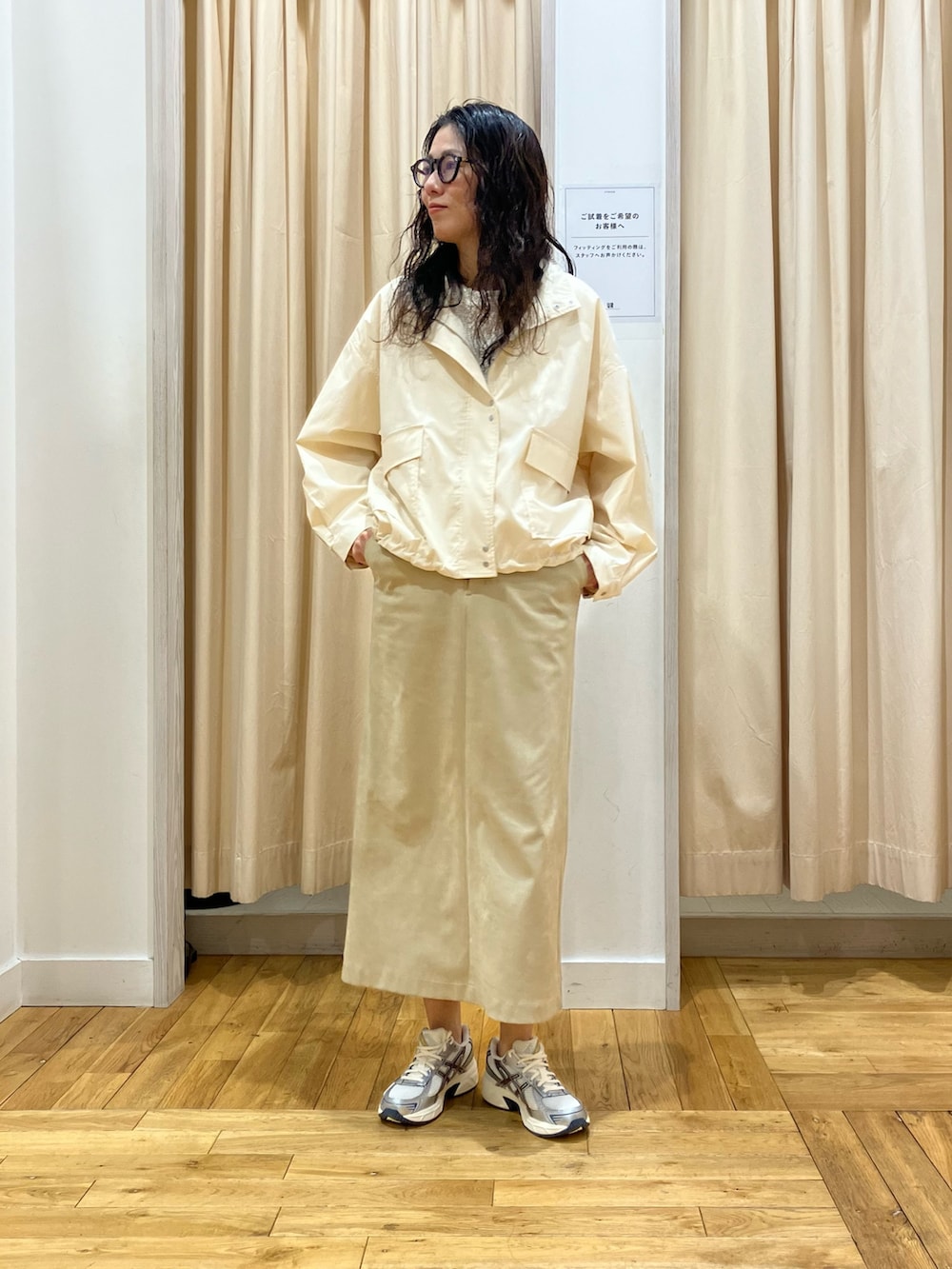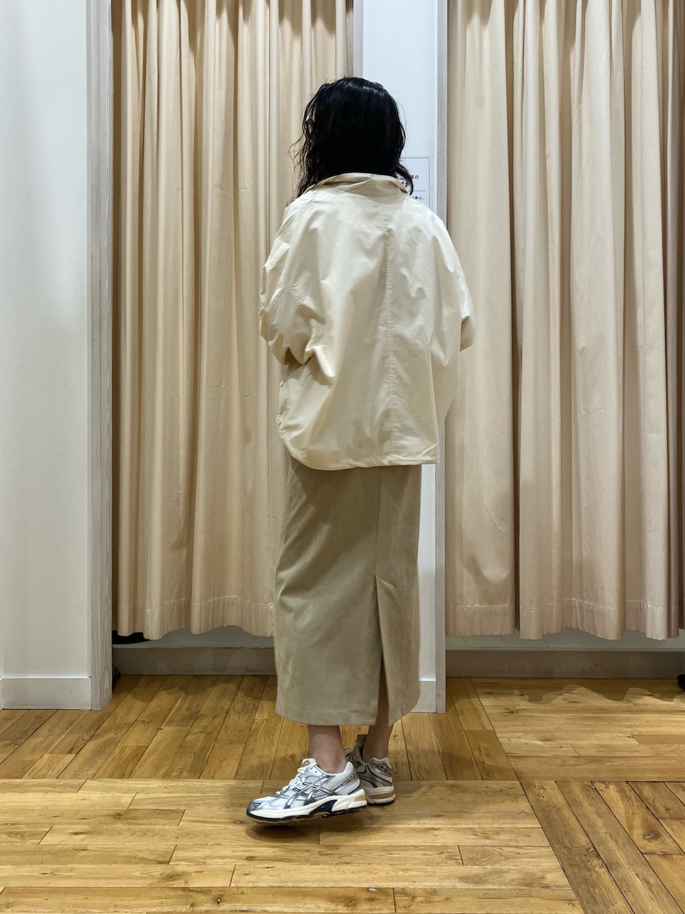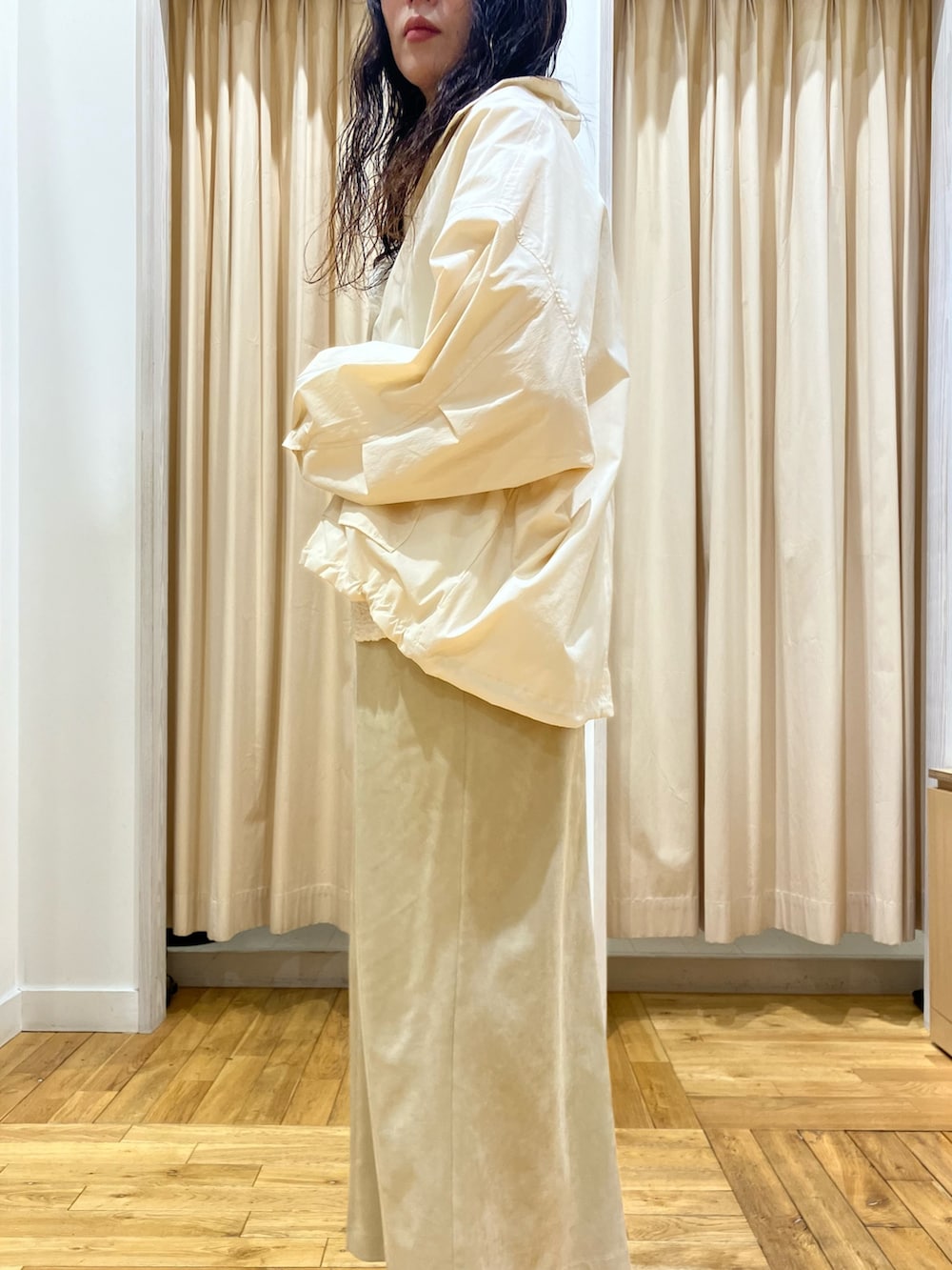 ゆるっと後ろ下がりに女性らしく着ていただけます。