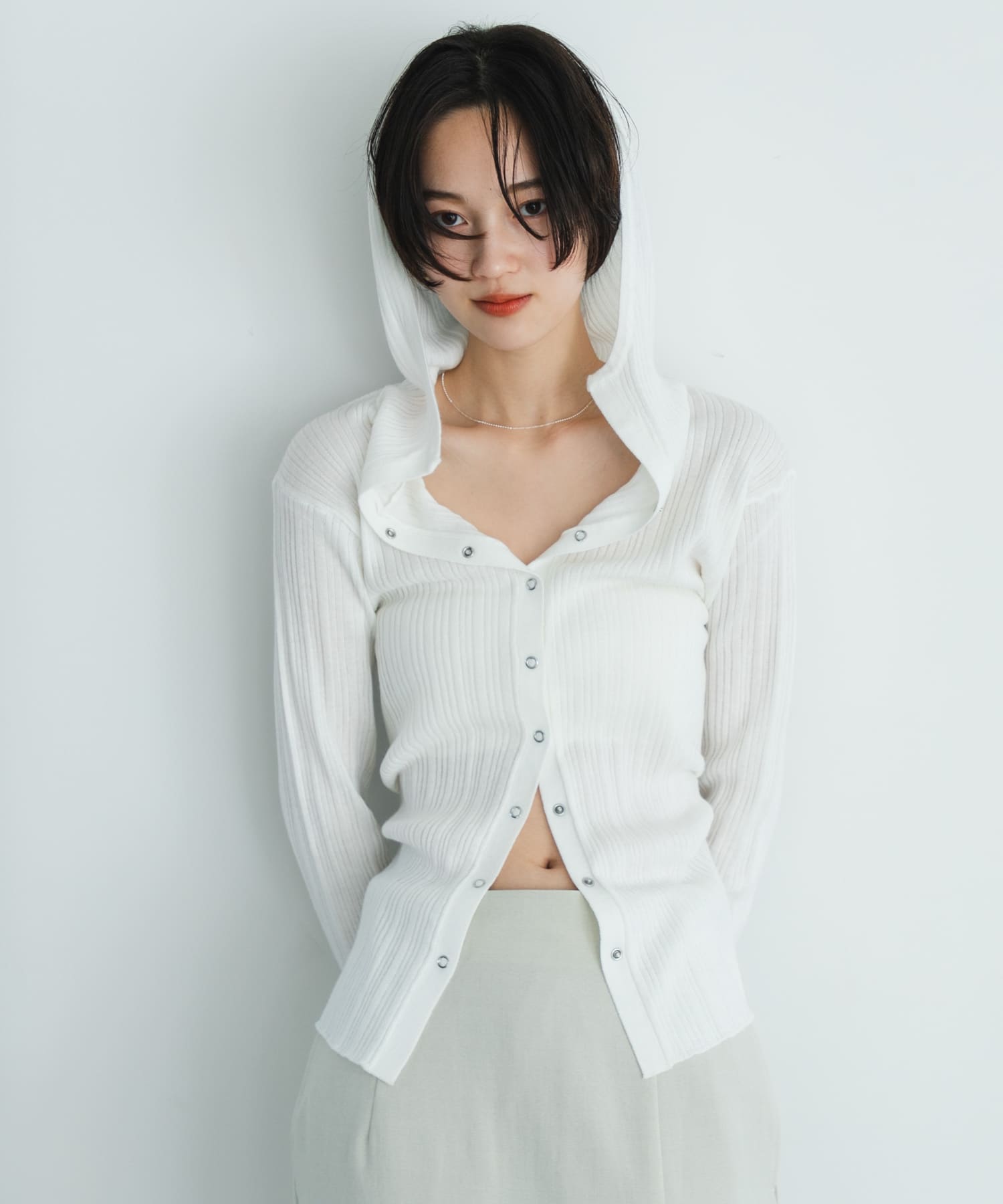 SENSE OF PLACE『洗濯可』マルチリブニットフーディー- 着用カラー: