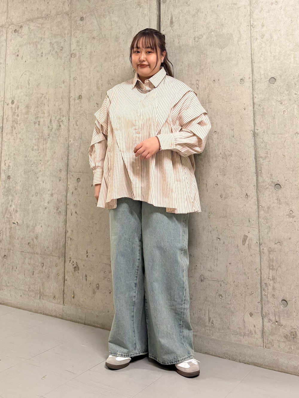 ストライプシャツは程よいピンクが可愛く、サイズも着やすくて◎