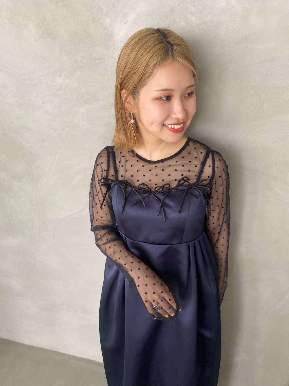 ANDRESD RIBBONS DRESS×SHEER TOPS
