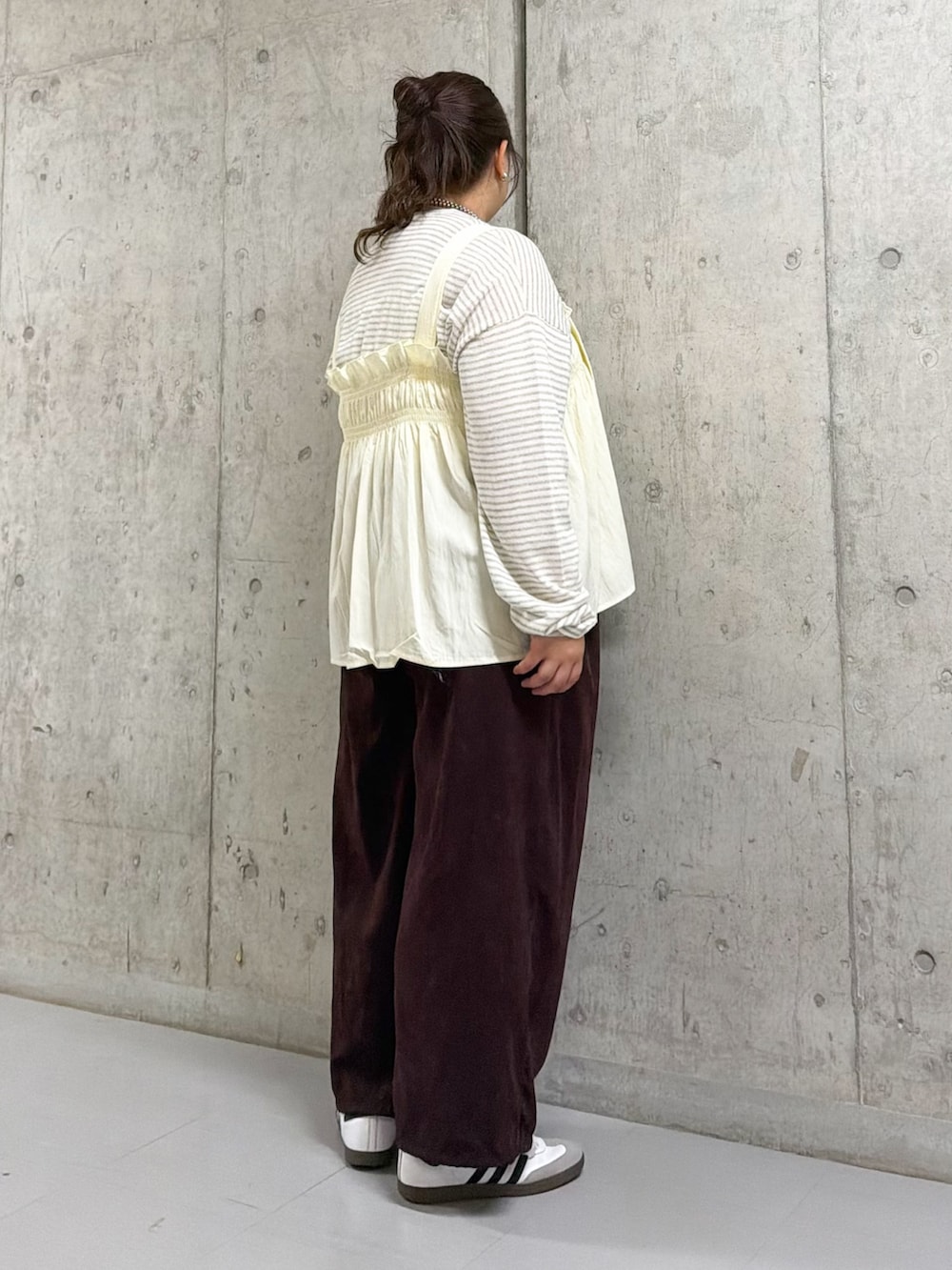 パンツはウエストがとても楽で、シルエットもワイドで穿きやすくて◎