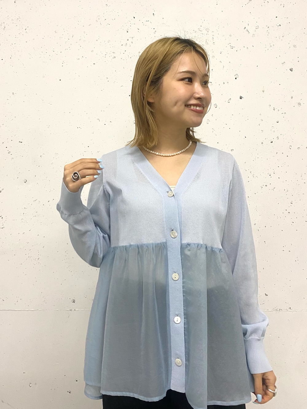 春から夏まで着用できるシアーカーディガン。