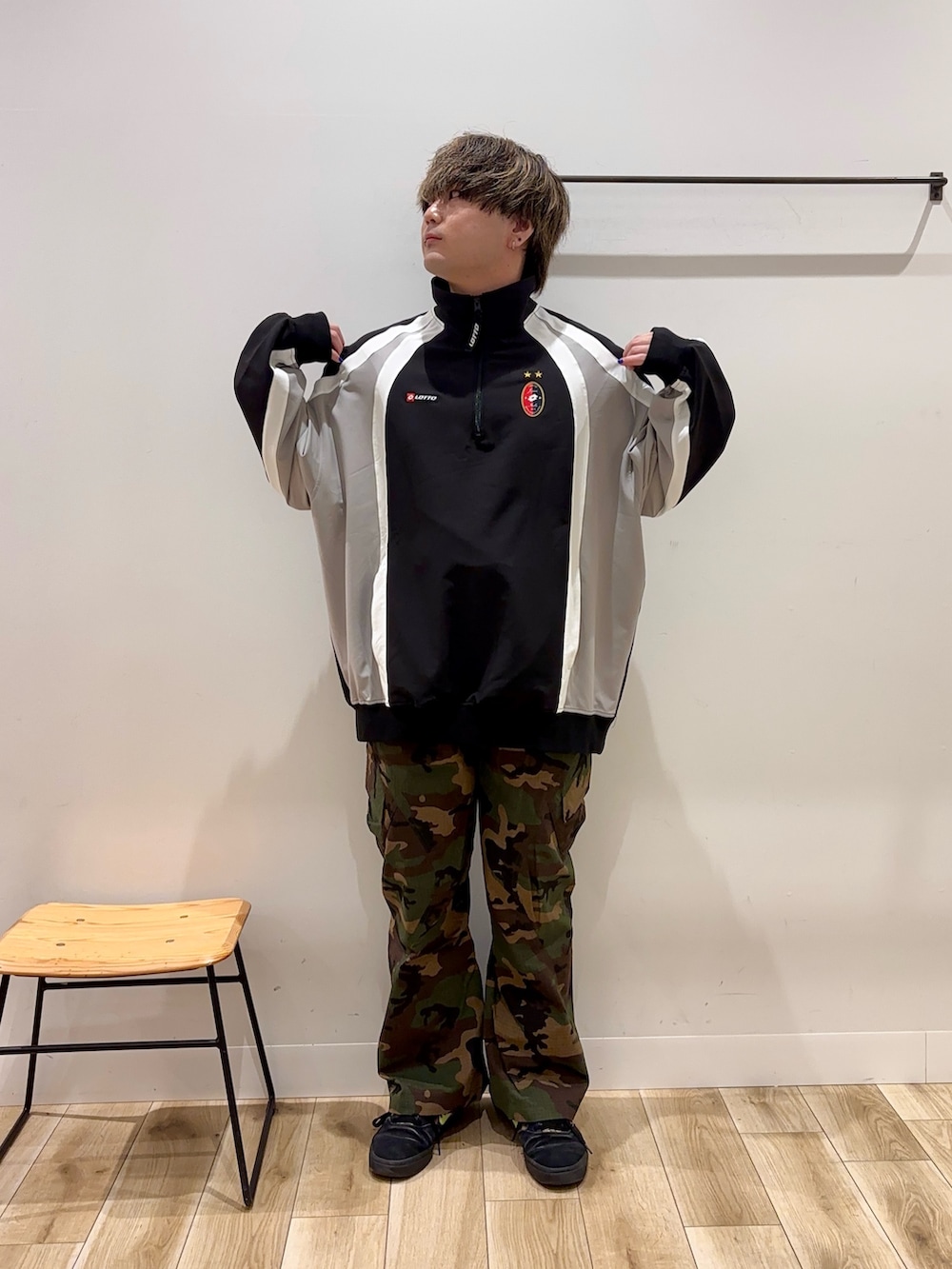 トップスがモノトーンなのでパンツは思い切ってミリタリー柄のカーゴパンツをチョイスしました👍