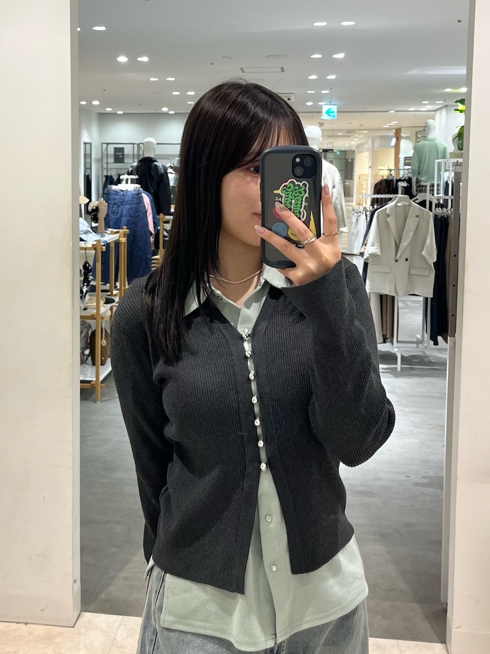 カーディガンの中にカラーシャツを重ねて春らしく軽やかな印象に。春はデニムと合わせたくなる季節ですね🌱