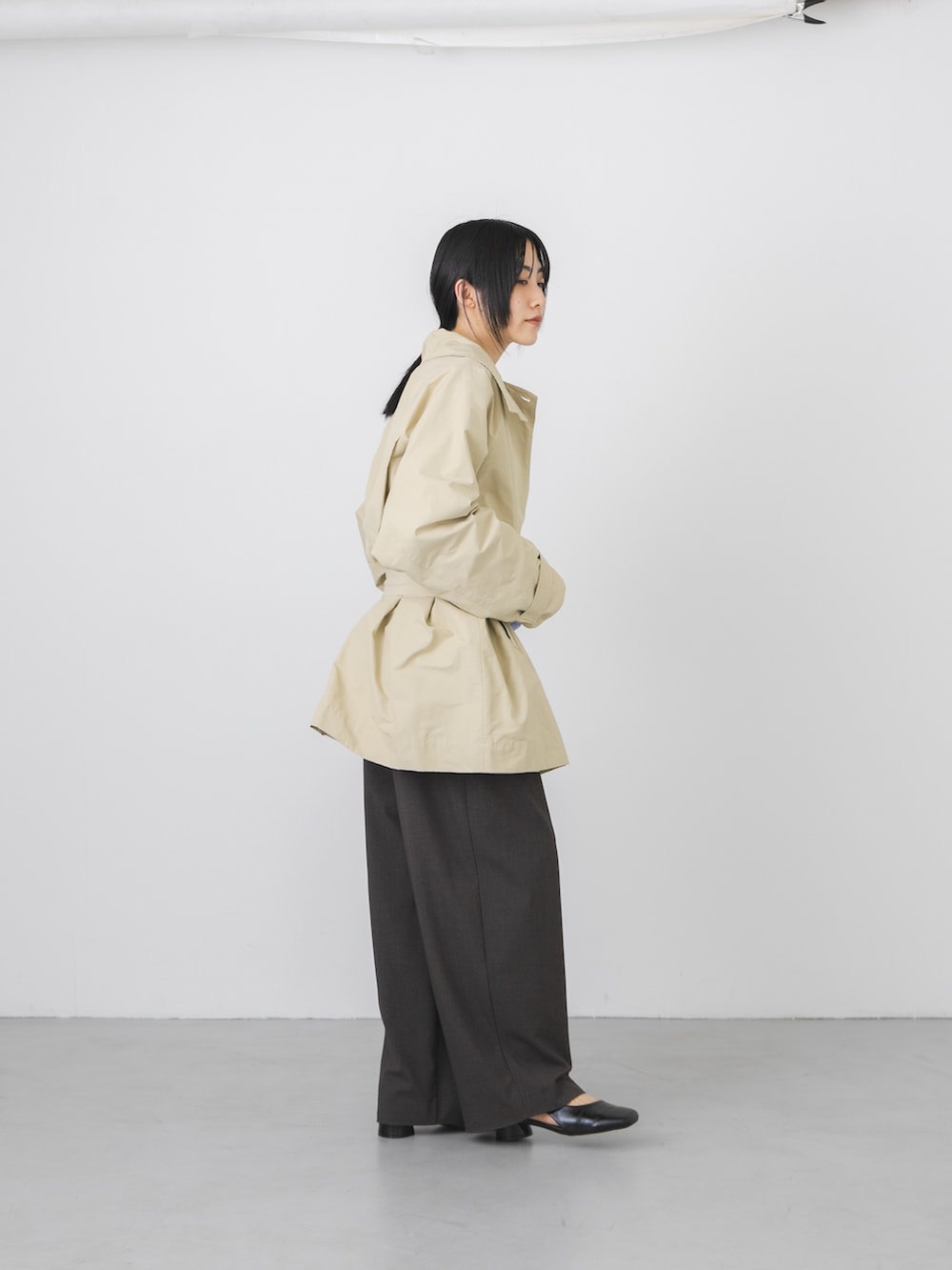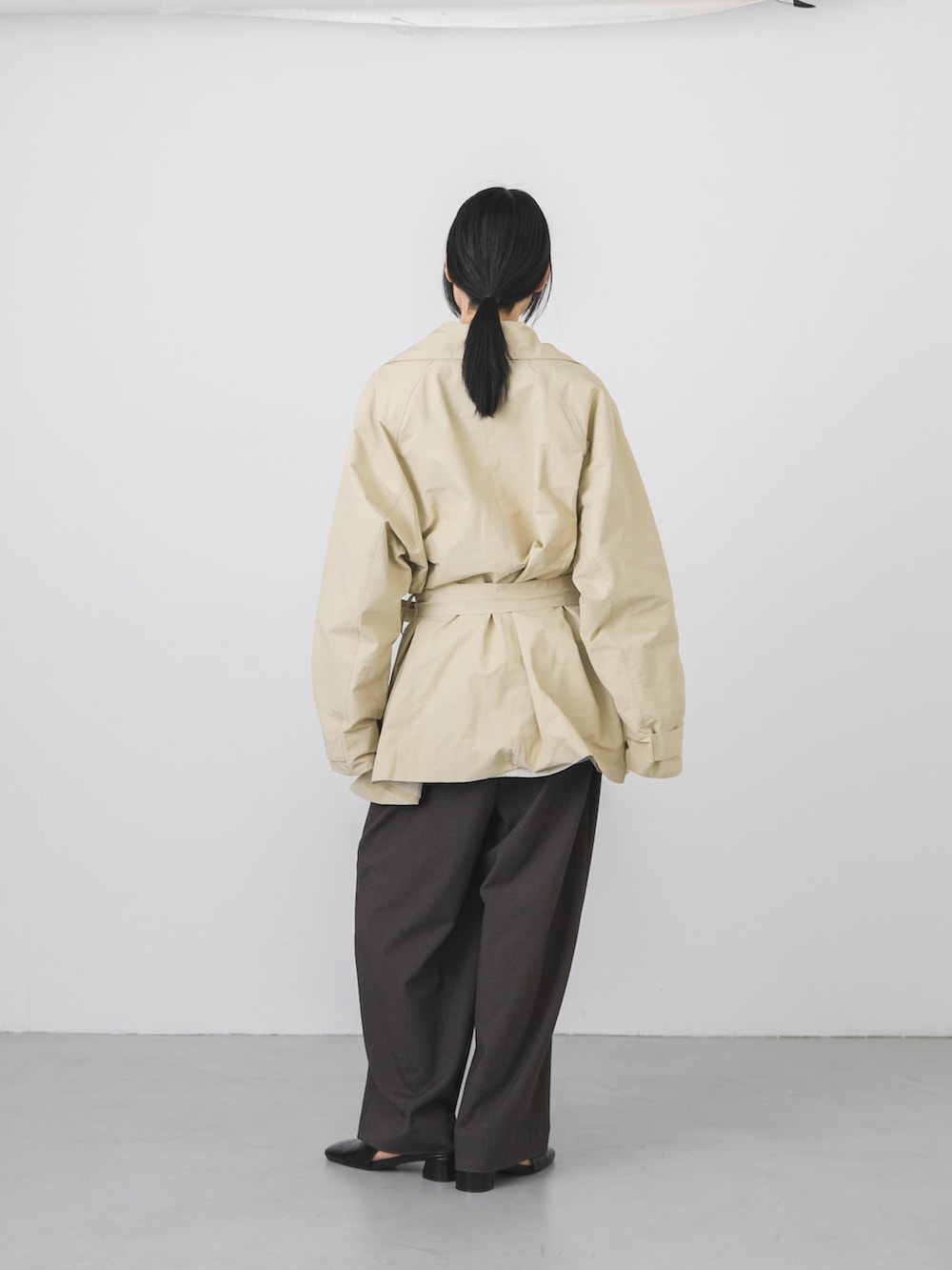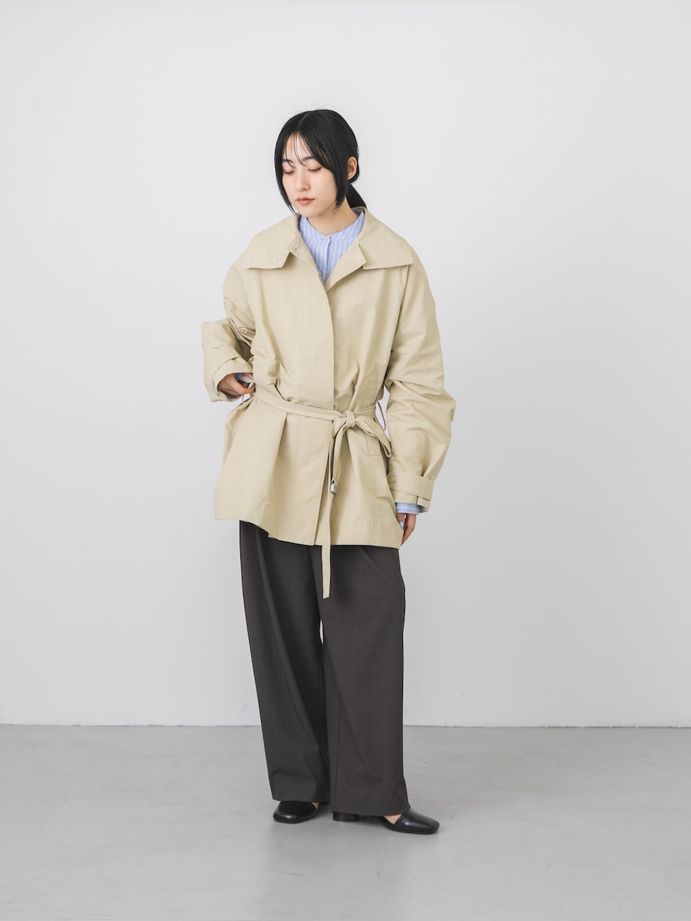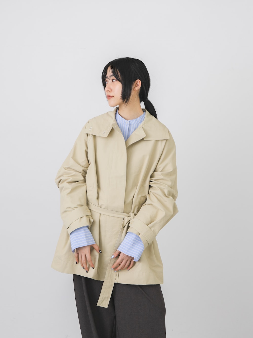ハイネック仕様やベルト付きで様々な着方を楽しめる1枚です。