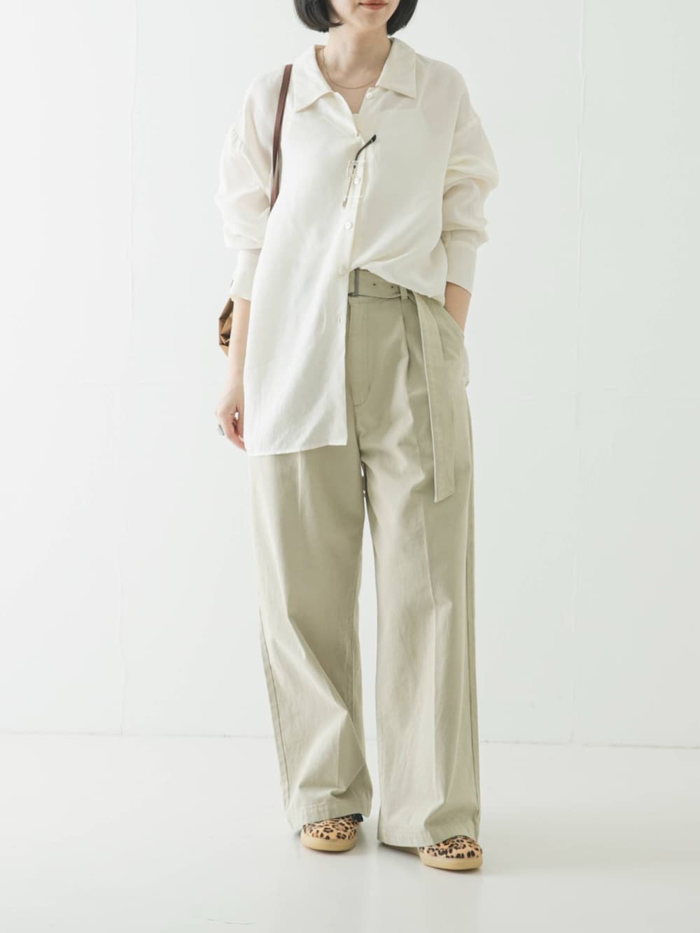 美脚シルエットと着回し力を誇る、ワードローブに欠かせないベルト付きタックワイドチノパンツ。