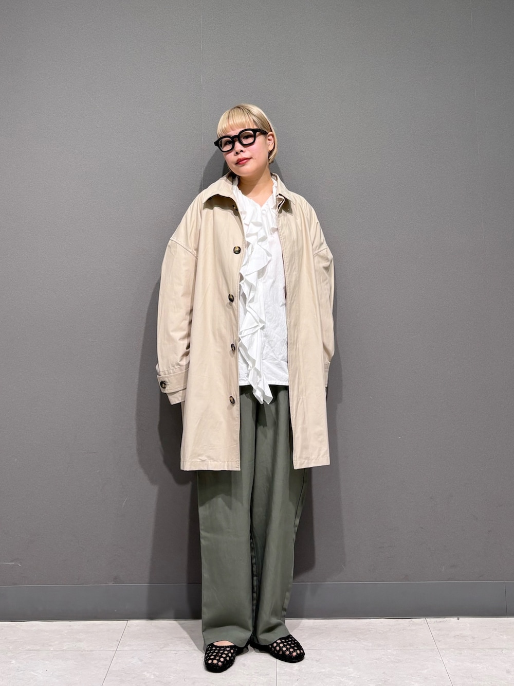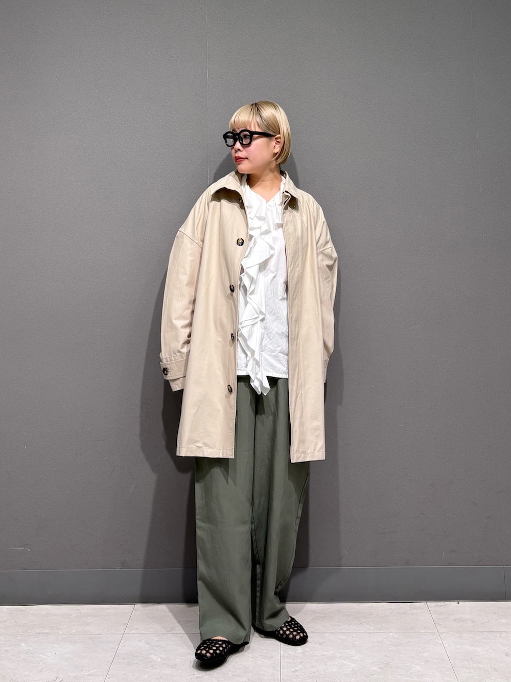 フリルブラウスにトロミカーゴパンツで