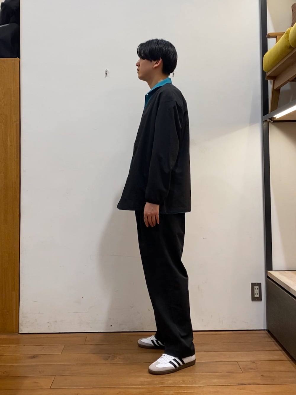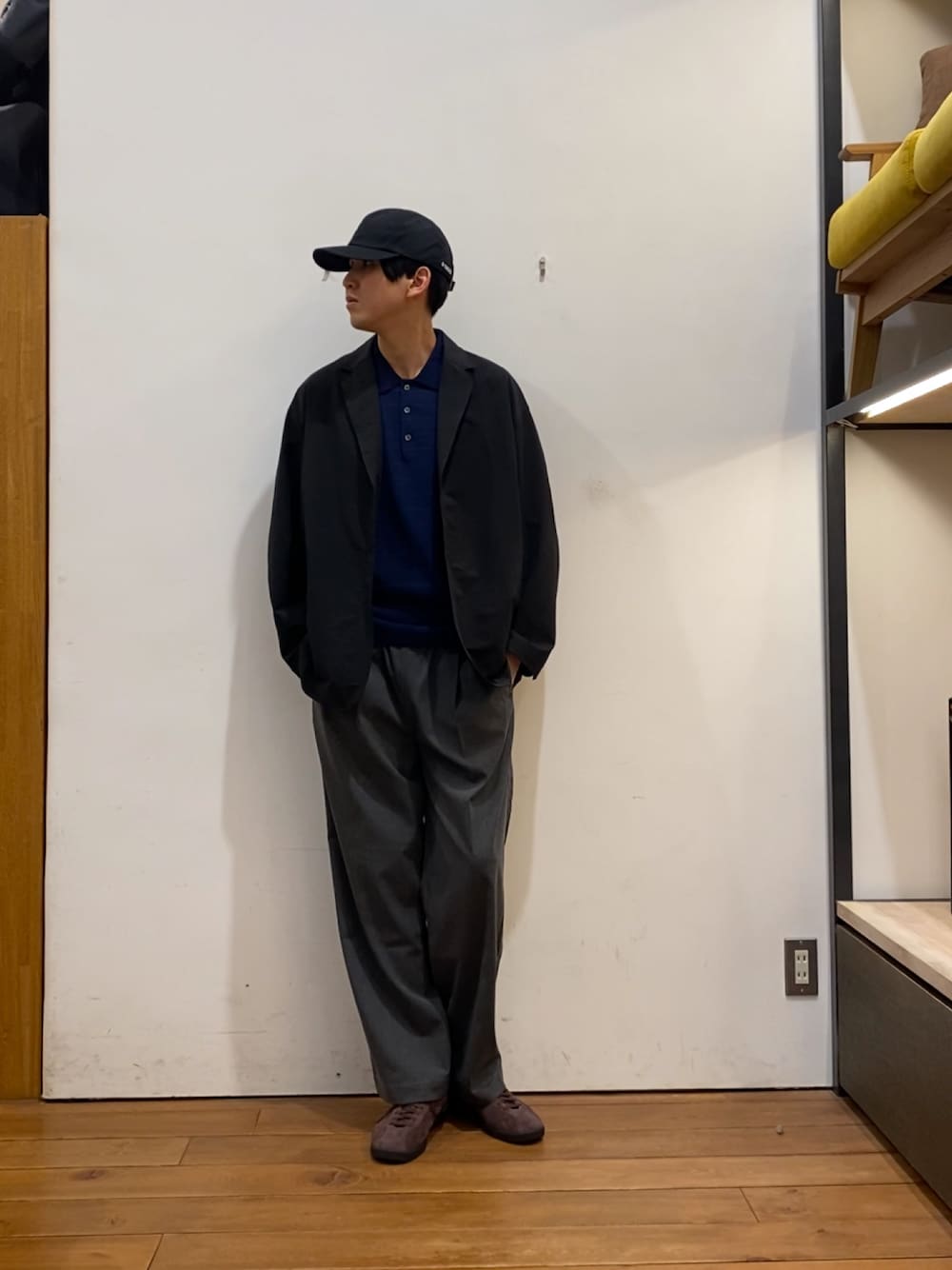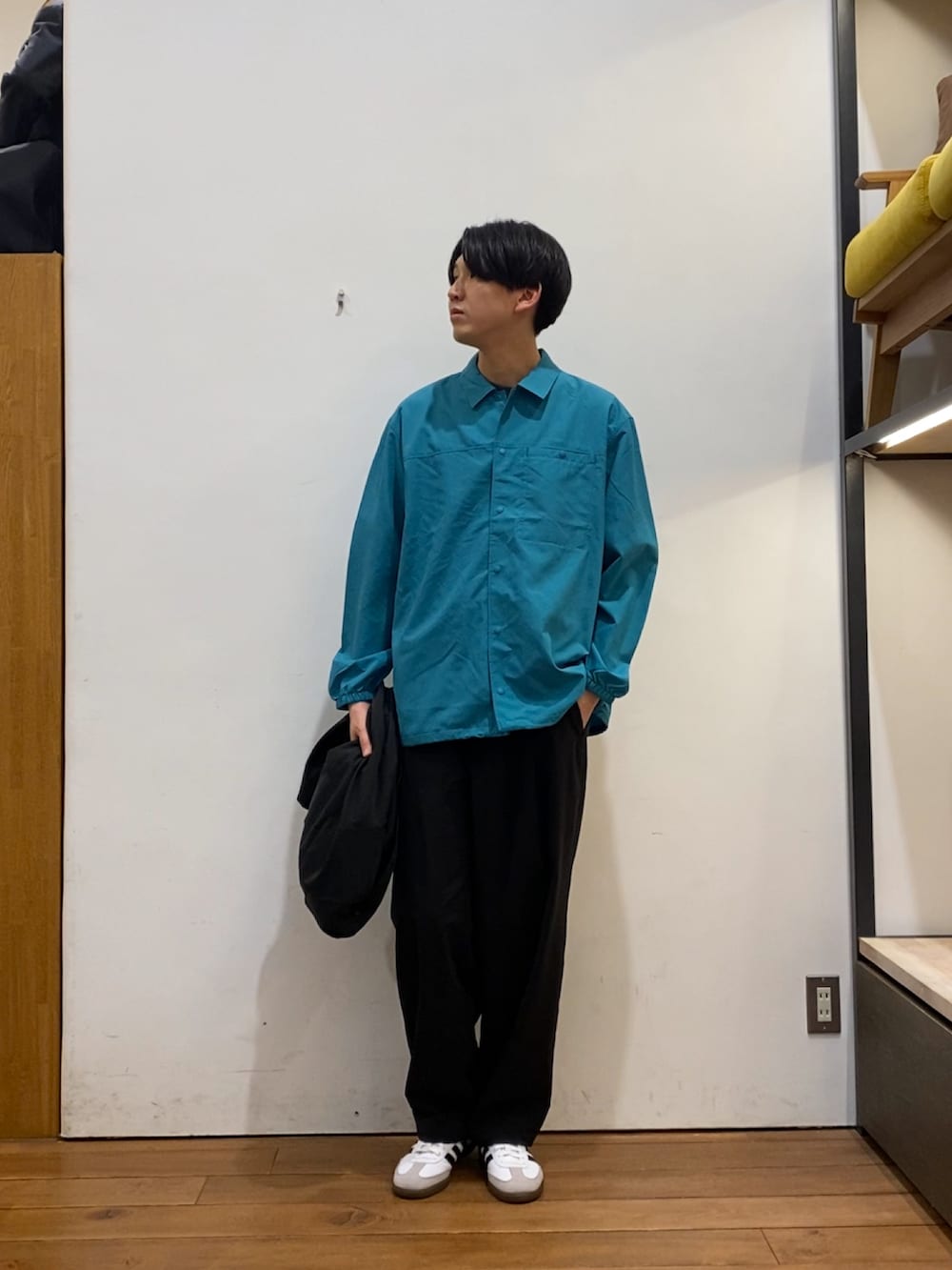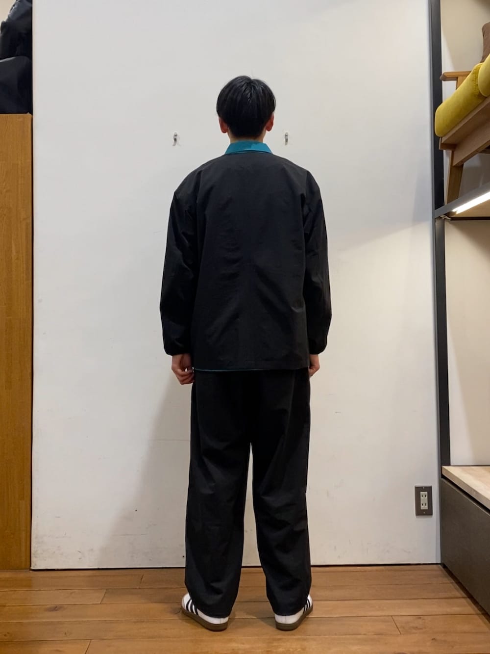 ブラックカラーのセットアップだと重たくなりがちなので、インナーに別注MARMOTのジャケットを合わせてみました!