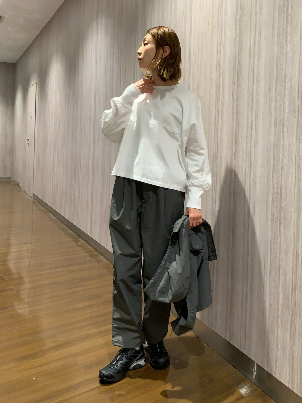 カットソーは、袖に大きなリブがあり腕のボリュームとリブのスッキリした部分とのデザインがとてもいい感じです。