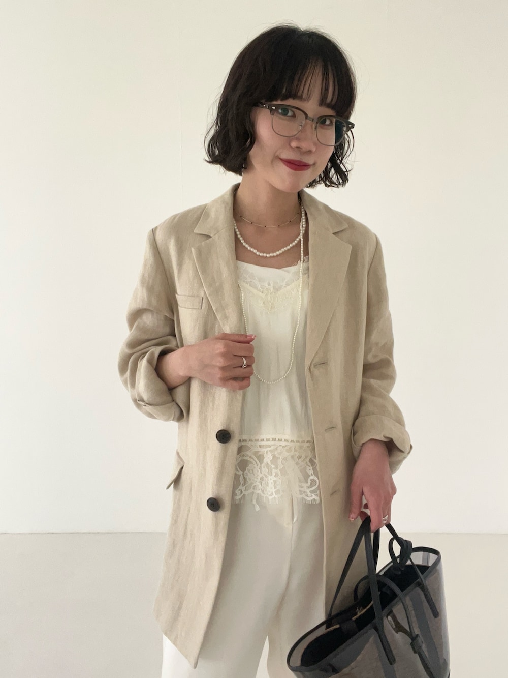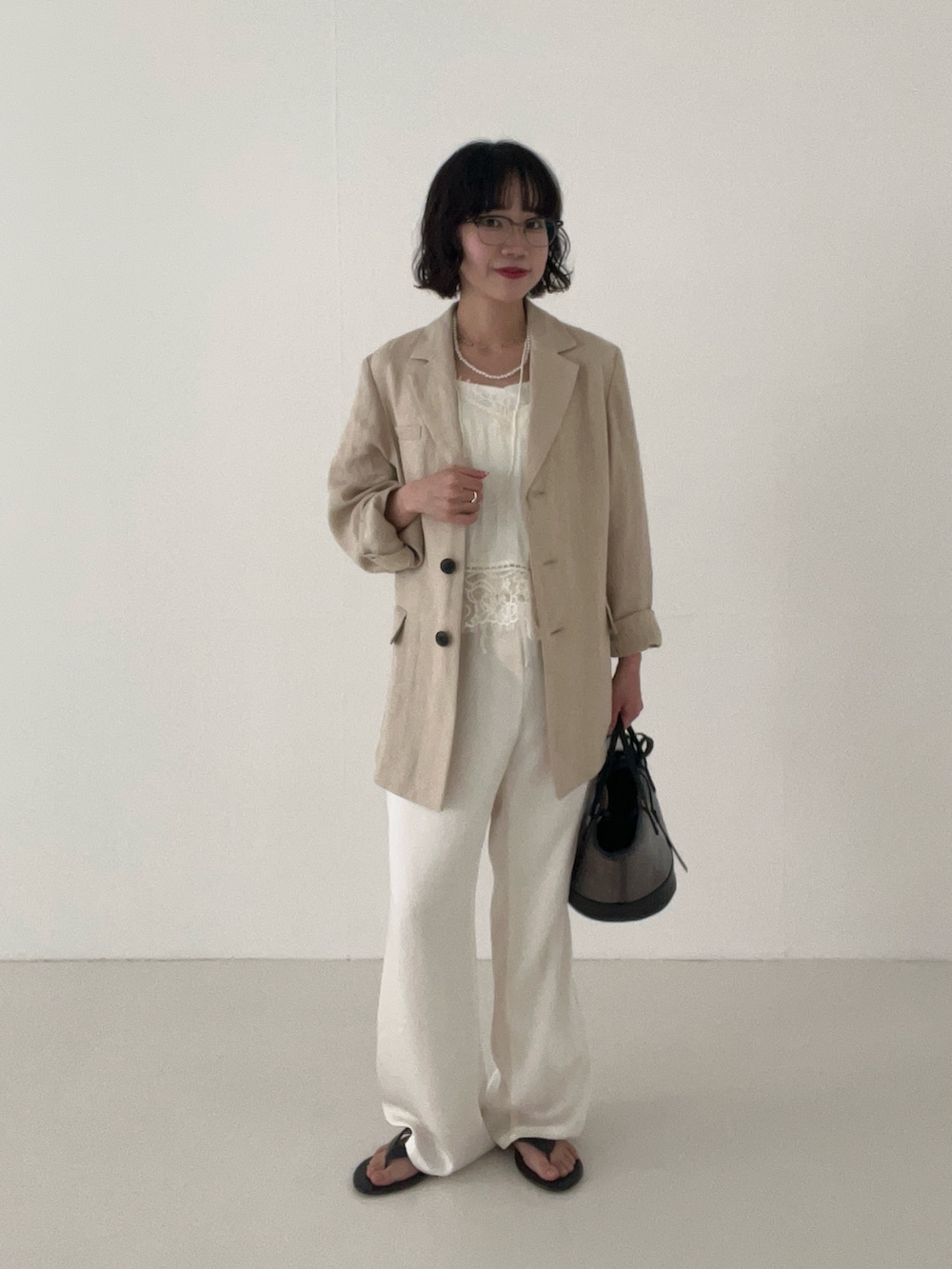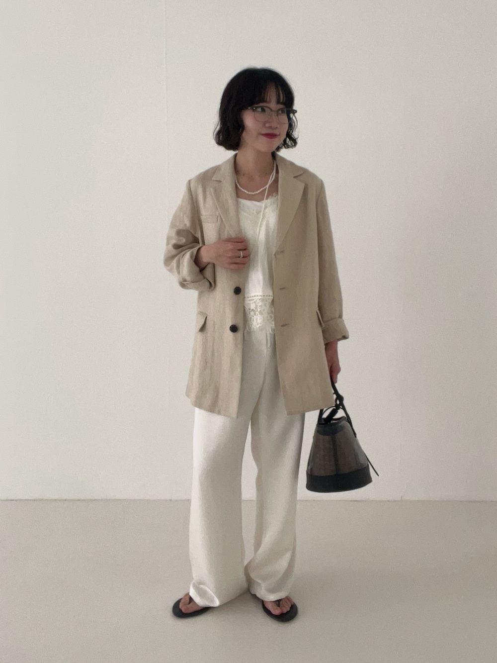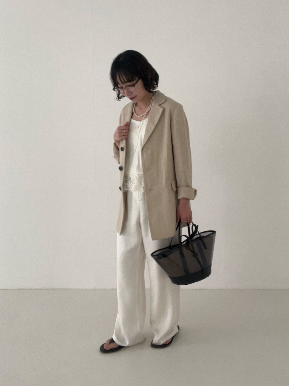リネン素材と裏地のない仕立てが通気性ばっちりで、春から初夏にかけてさらっと羽織れます🌻