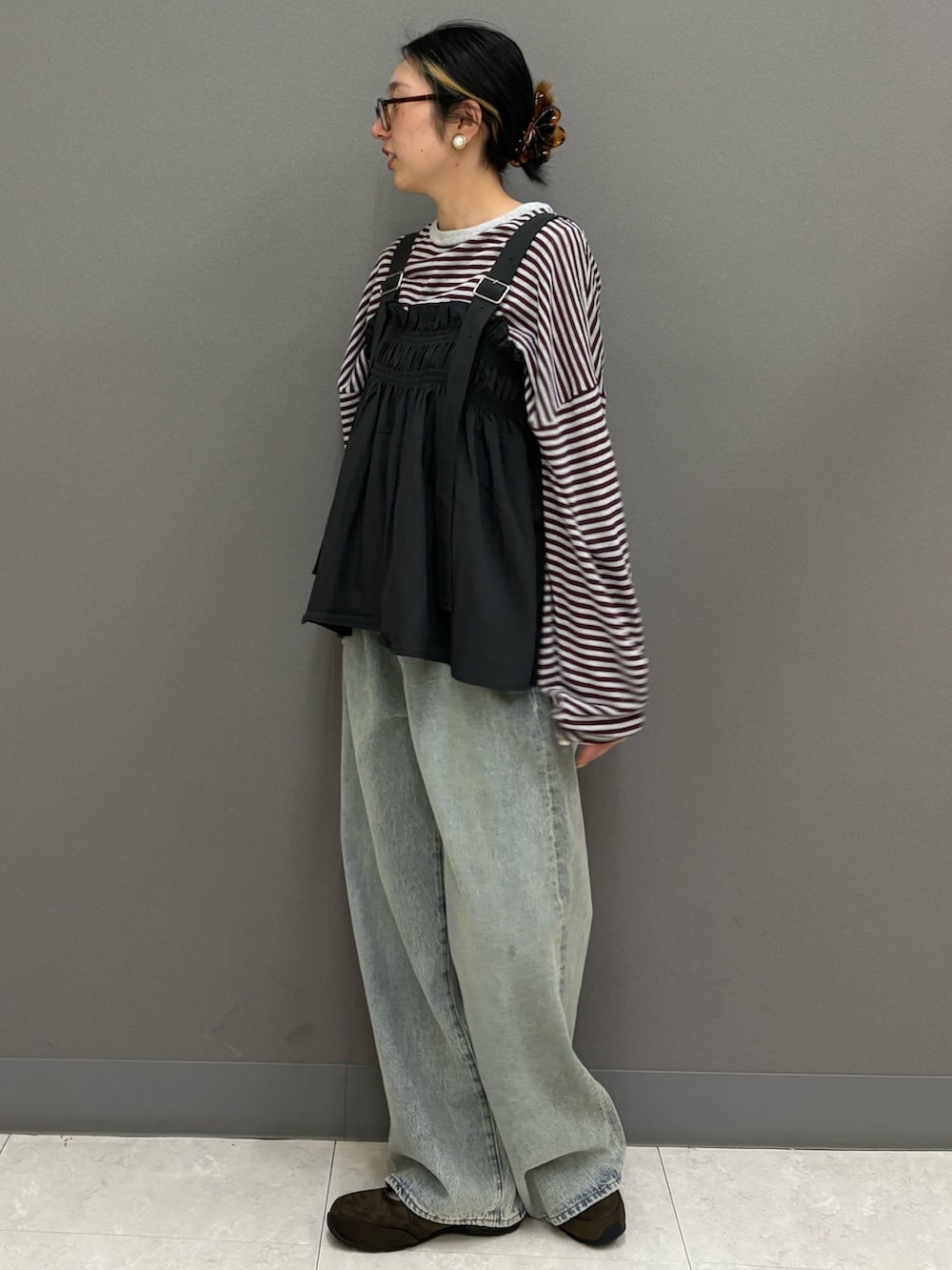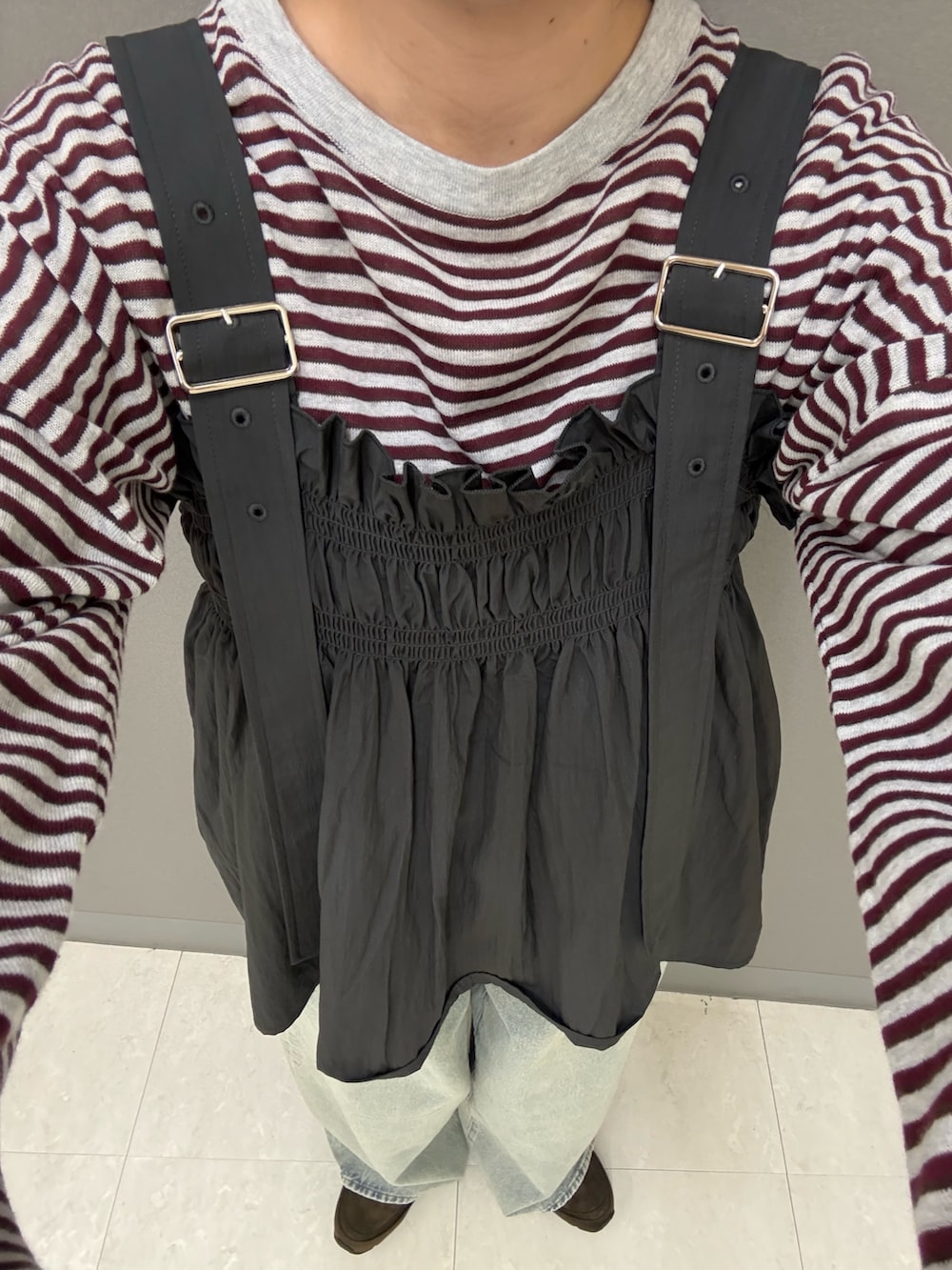 カジュアルで動きやすさメインですが,ビスチェでオシャレさをプラス❗️