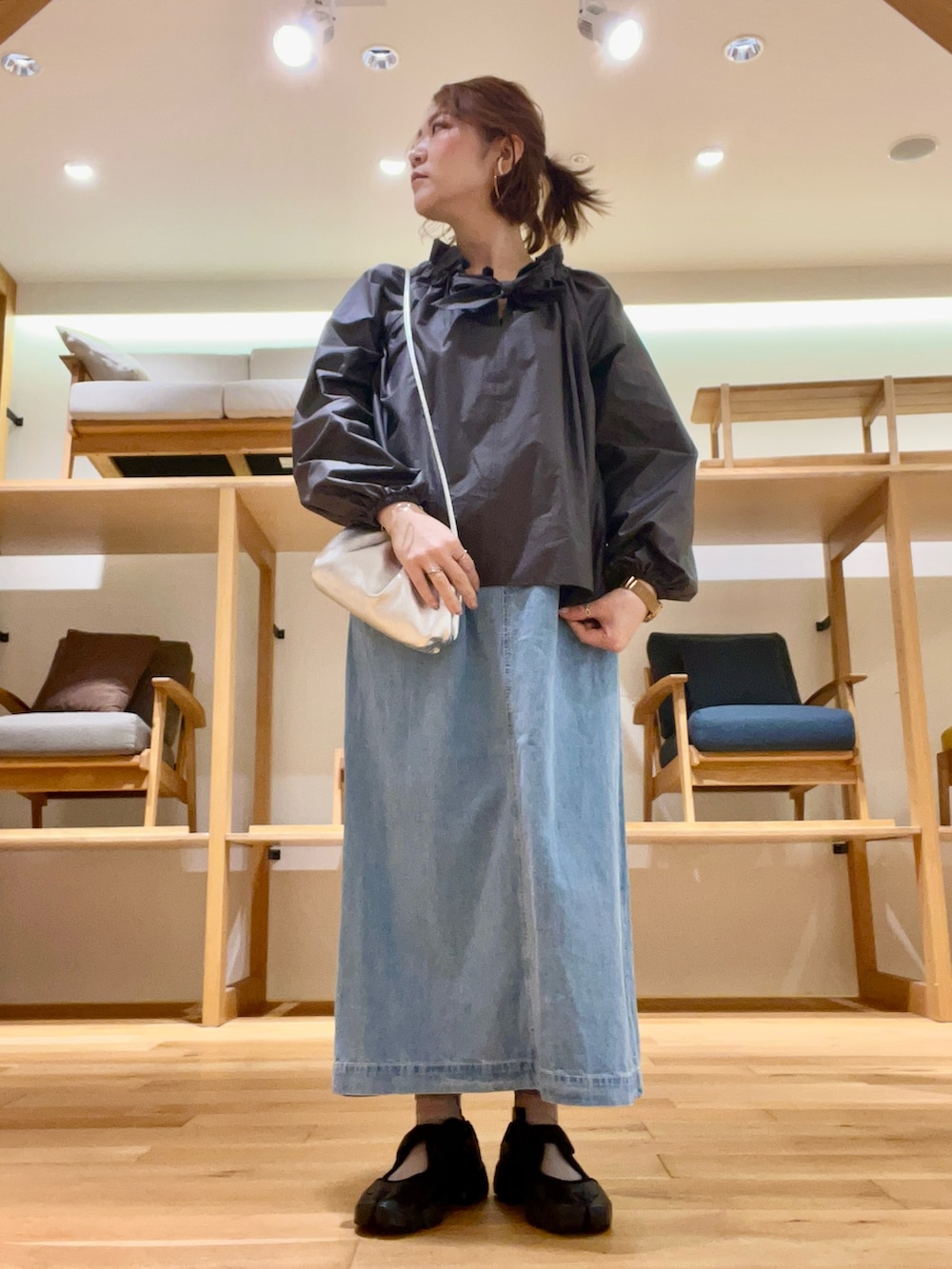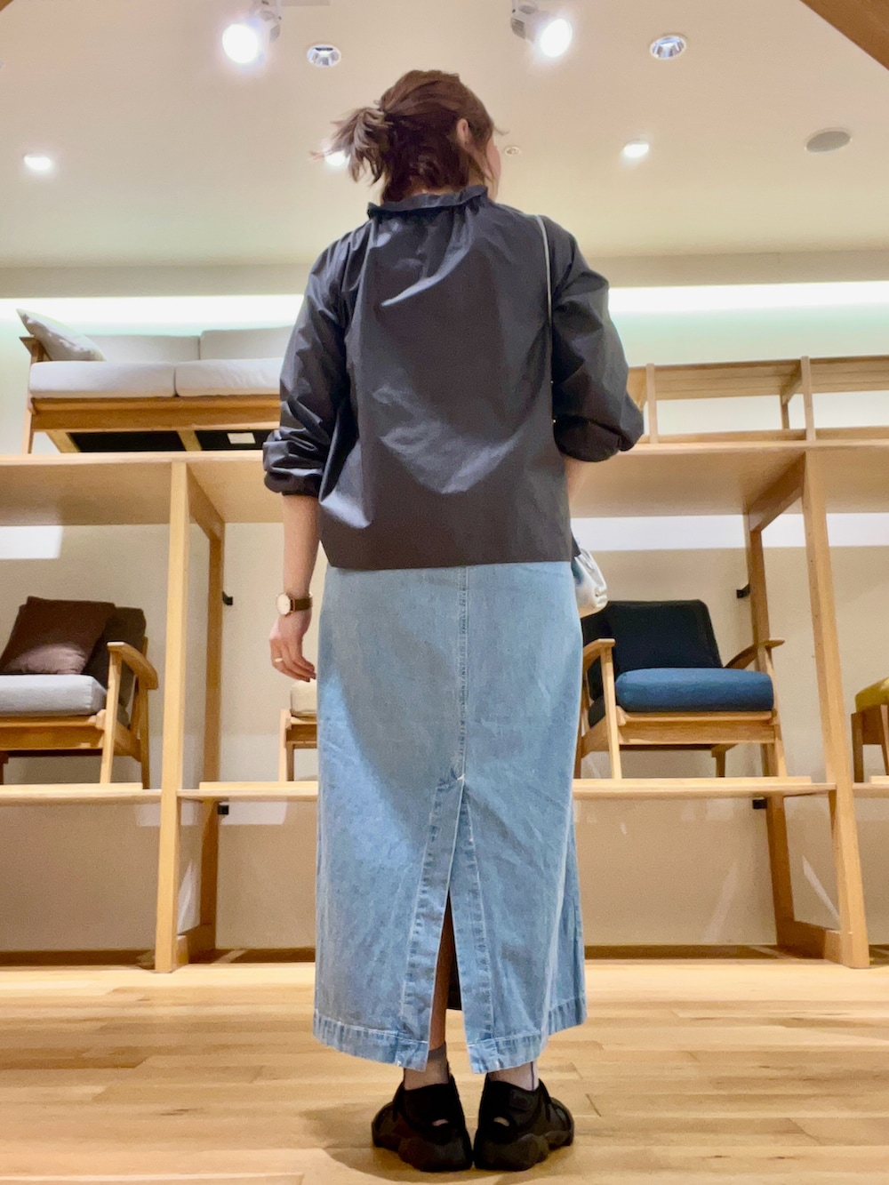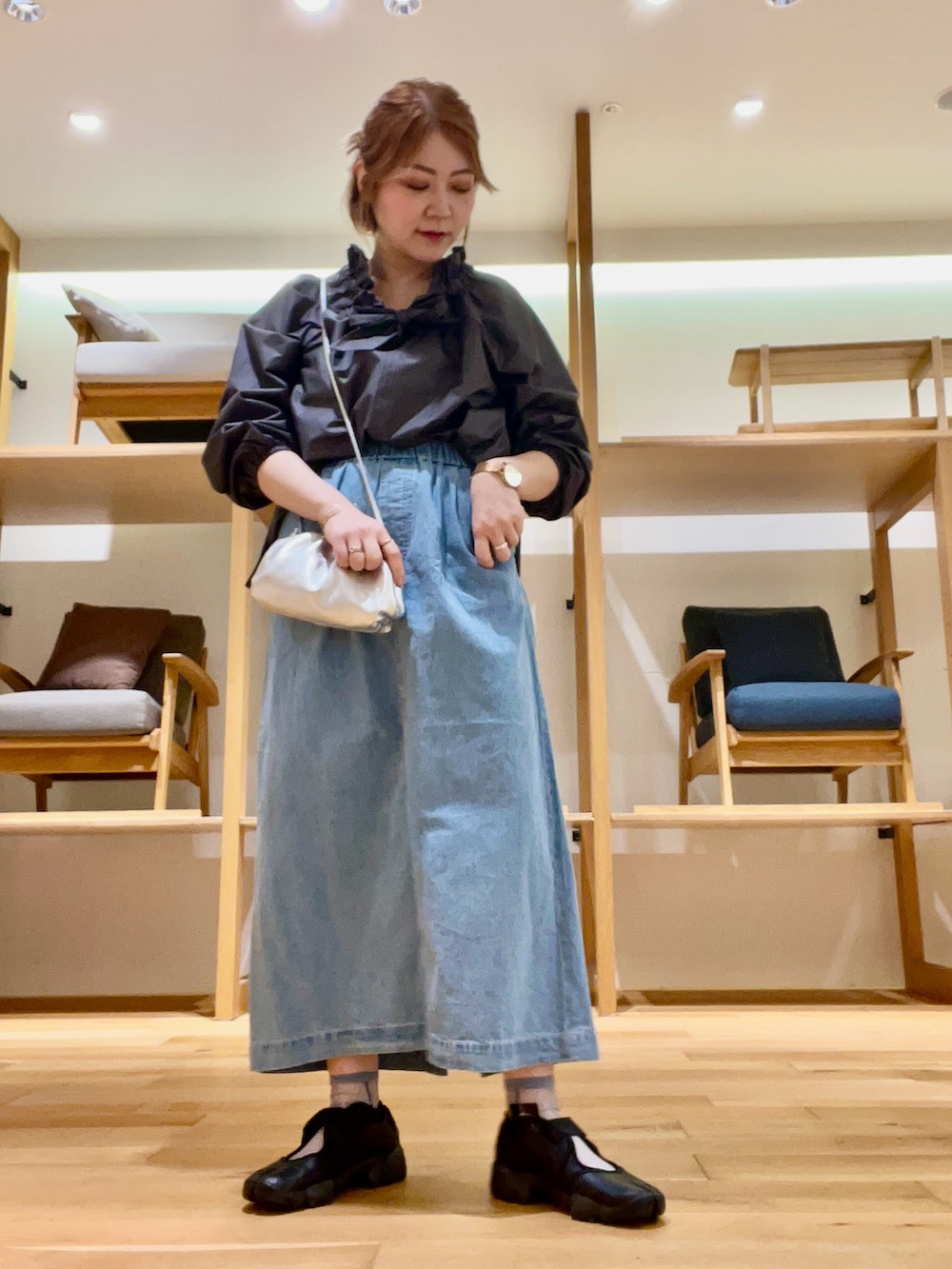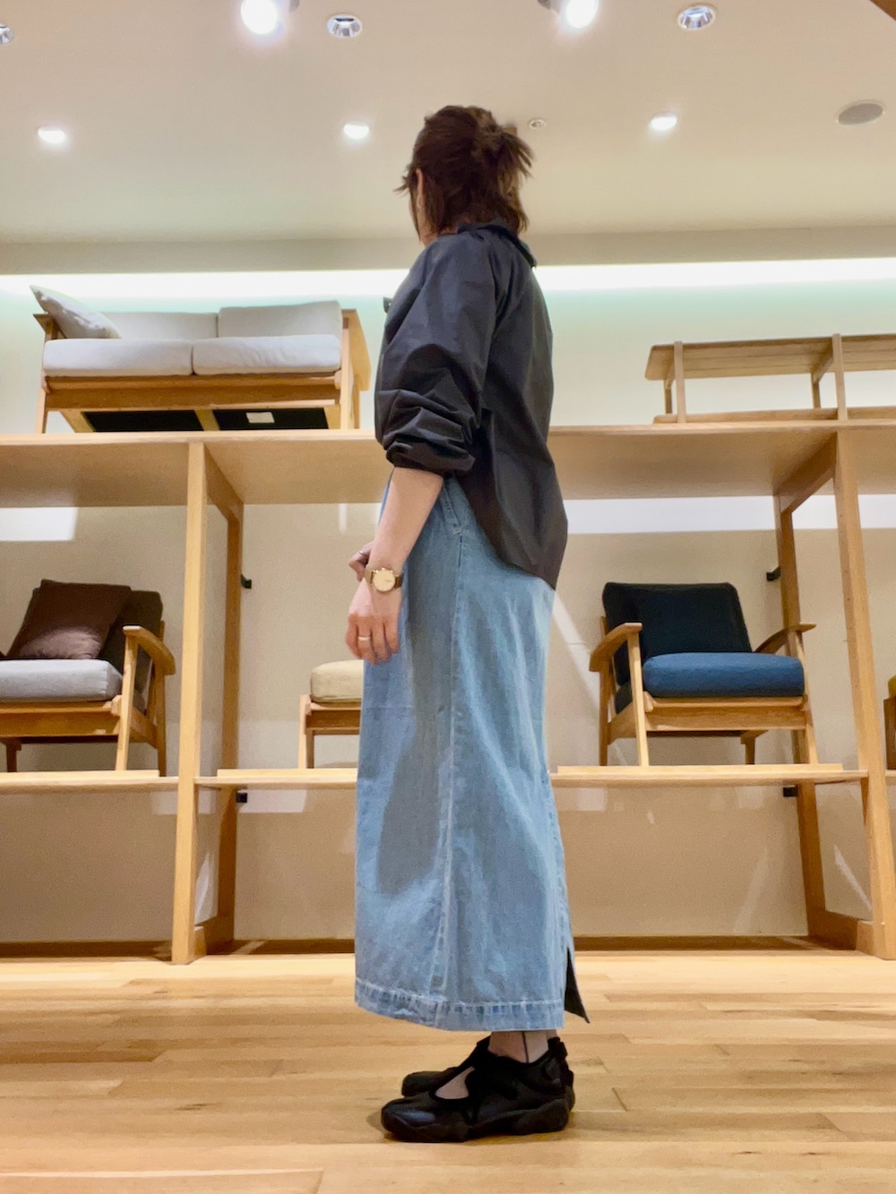 スカートは軽く動きやすい生地感で着丈がシューズを際立たせてくれます‼︎